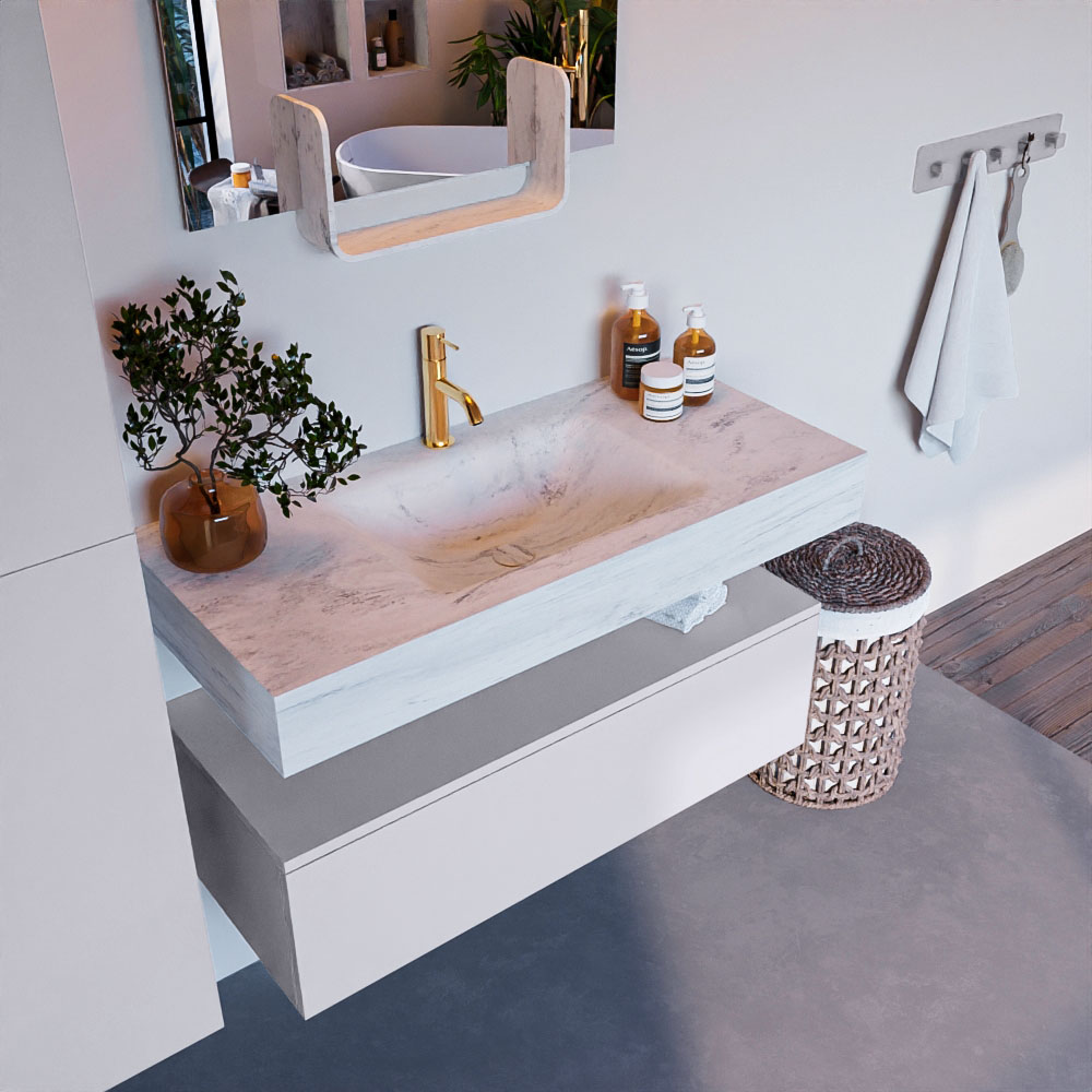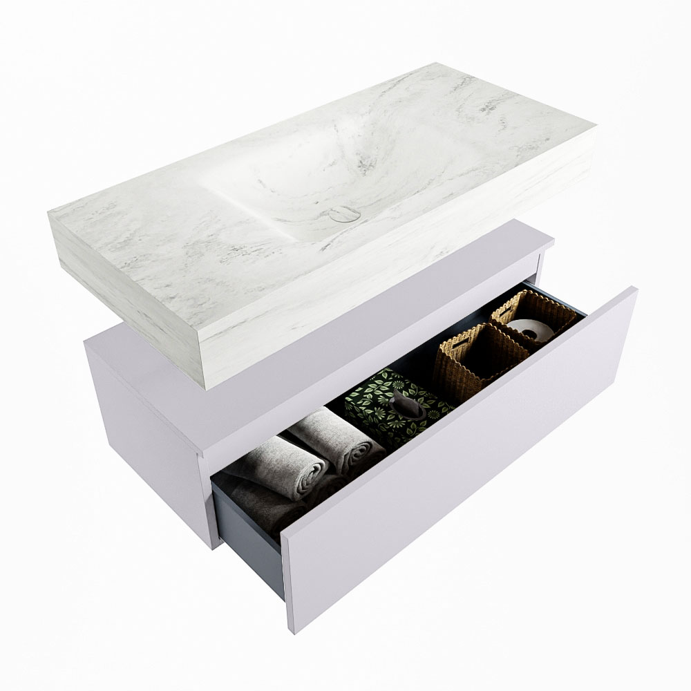 MONDIAZ ALAN-DLUX 100cm mueble de baño Cale 1 cajón. Lavabo CLOUD Centro 1 orificio color Opalo.