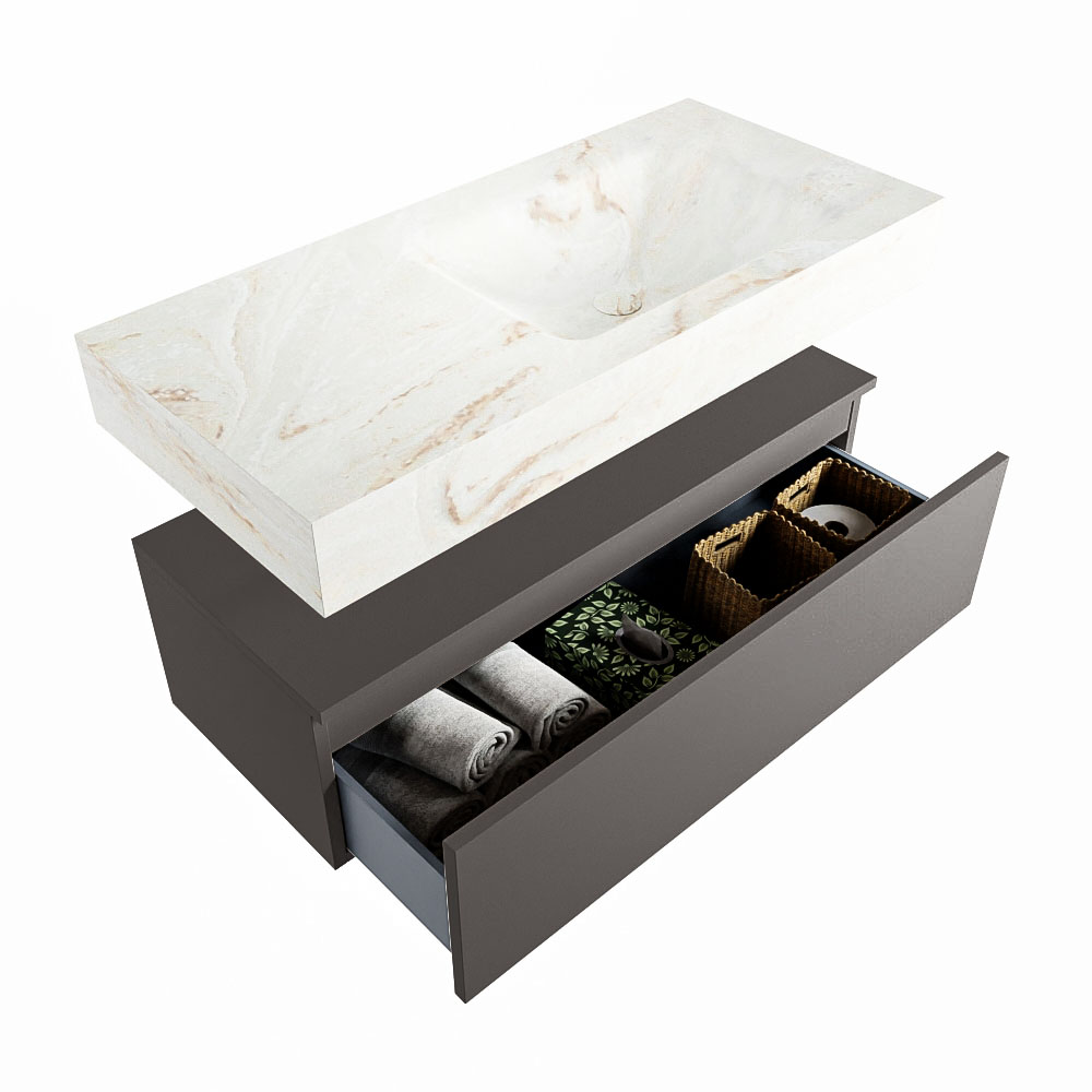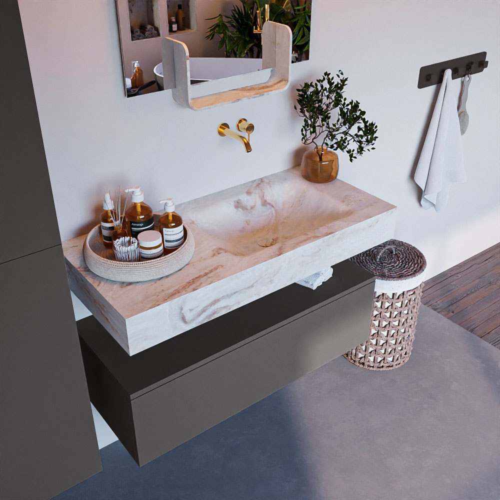 MONDIAZ ALAN-DLUX 100cm mueble de baño Dark Grey 1 cajón. Lavabo CLOUD Derecho sin orificios color Frappe.