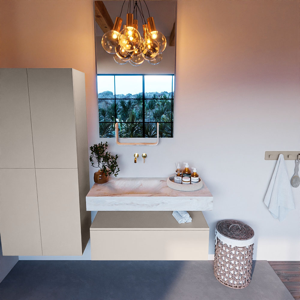Cree un aspecto elegante y fantástico en su baño con el conjunto de muebles de baño Alan DLUX. El deslumbrante conjunto de muebles de baño ALAN-DLUX consta de un lavabo suspendido con suaves líneas orgánicas de CORIAN en Solid Surface marmolado combinado con el mueble de baño ALAN. El conjunto de muebles de baño ALAN-DLUX es adecuado para cualquier baño, ya sea pequeño o grande. Para completar completamente su baño, también hay disponibles varios accesorios en estos mármoles, como las repisas Mondiaz y los estantes de espejo.