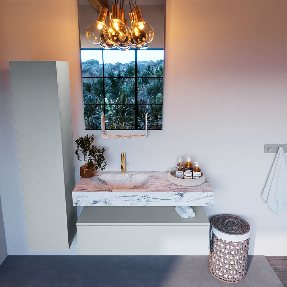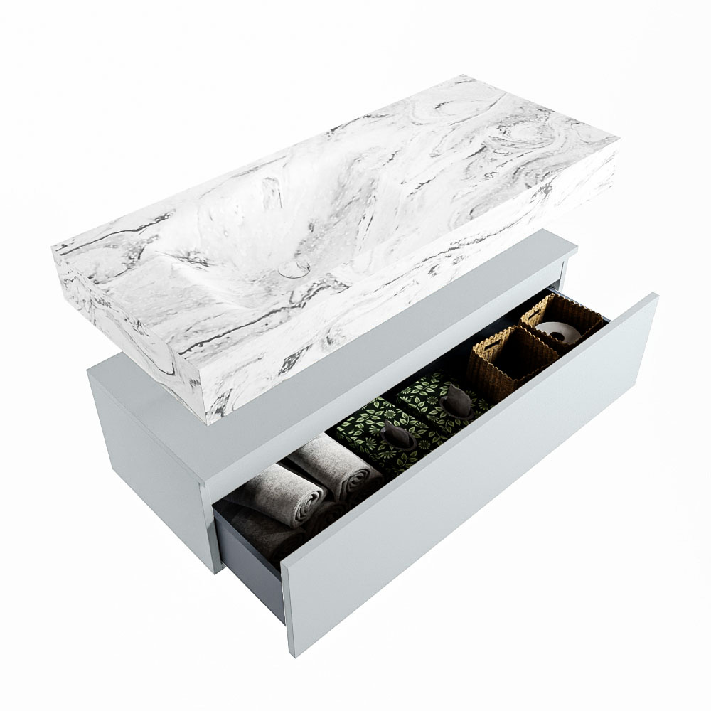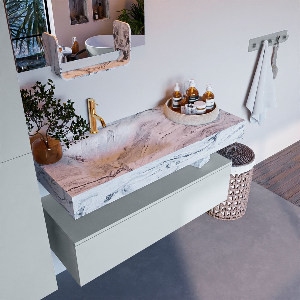 MONDIAZ ALAN-DLUX 110cm mueble de baño Clay 1 cajón. Lavabo CLOUD Izquierda 1 orificio color Glace.