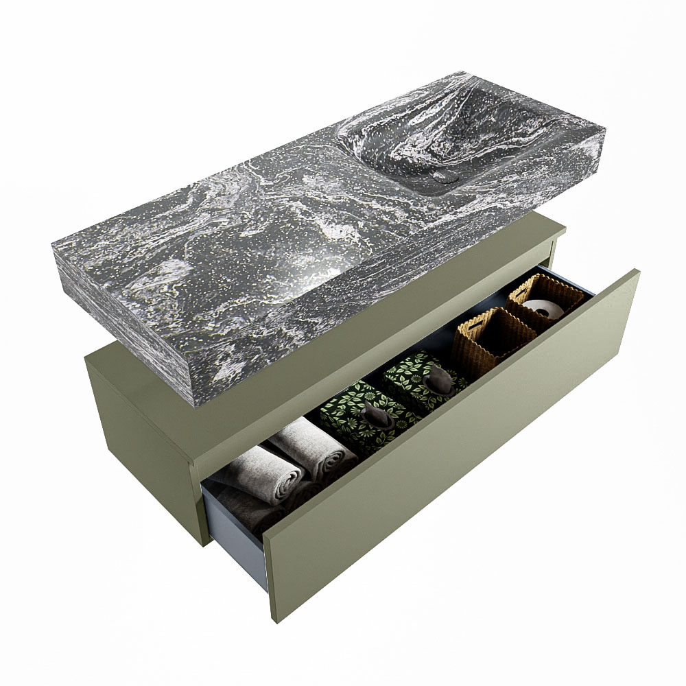 Cree un aspecto elegante y fantástico en su baño con el conjunto de muebles de baño Alan DLUX. El deslumbrante conjunto de muebles de baño ALAN-DLUX consta de un lavabo suspendido con suaves líneas orgánicas de CORIAN en Solid Surface marmolado combinado con el mueble de baño ALAN. El conjunto de muebles de baño ALAN-DLUX es adecuado para cualquier baño, ya sea pequeño o grande. Para completar completamente su baño, también hay disponibles varios accesorios en estos mármoles, como las repisas Mondiaz y los estantes de espejo.
