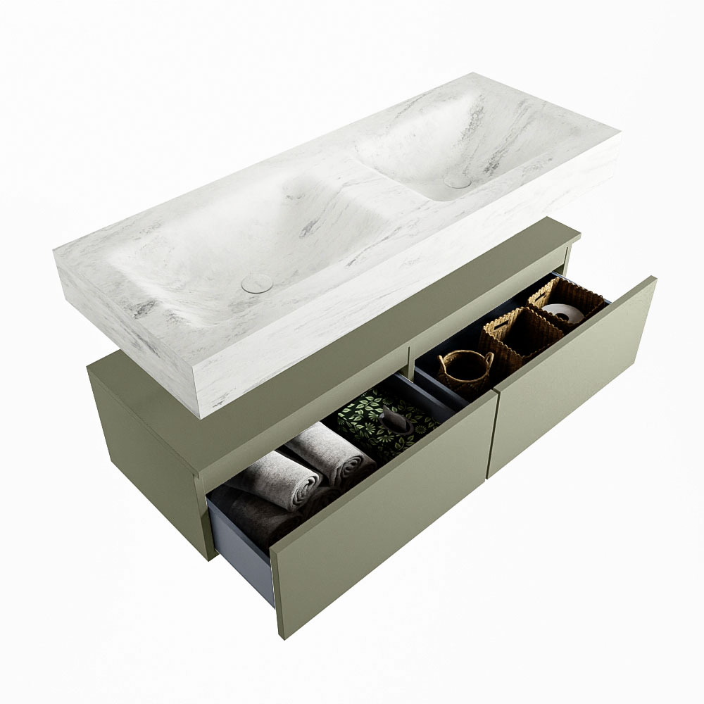 Cree un aspecto elegante y fantástico en su baño con el conjunto de muebles de baño Alan DLUX. El deslumbrante conjunto de muebles de baño ALAN-DLUX consta de un lavabo suspendido con suaves líneas orgánicas de CORIAN en Solid Surface marmolado combinado con el mueble de baño ALAN. El conjunto de muebles de baño ALAN-DLUX es adecuado para cualquier baño, ya sea pequeño o grande. Para completar completamente su baño, también hay disponibles varios accesorios en estos mármoles, como las repisas Mondiaz y los estantes de espejo.