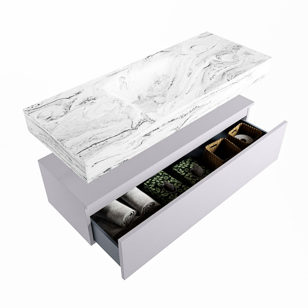Cree un aspecto elegante y fantástico en su baño con el conjunto de muebles de baño Alan DLUX. El deslumbrante conjunto de muebles de baño ALAN-DLUX consta de un lavabo suspendido con suaves líneas orgánicas de CORIAN en Solid Surface marmolado combinado con el mueble de baño ALAN. El conjunto de muebles de baño ALAN-DLUX es adecuado para cualquier baño, ya sea pequeño o grande. Para completar completamente su baño, también hay disponibles varios accesorios en estos mármoles, como las repisas Mondiaz y los estantes de espejo.