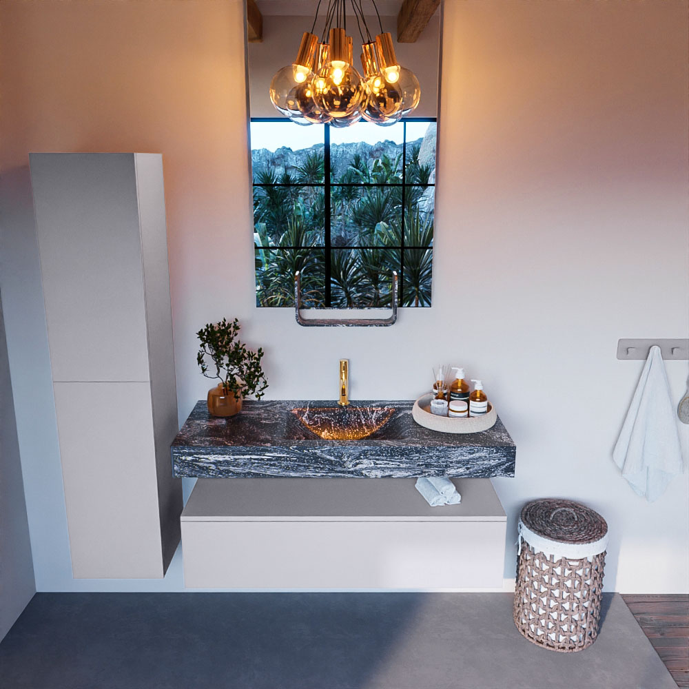 MONDIAZ ALAN-DLUX 120cm mueble de baño Cale 1 cajón. Lavabo CLOUD Centro 1 orificio color Lava.