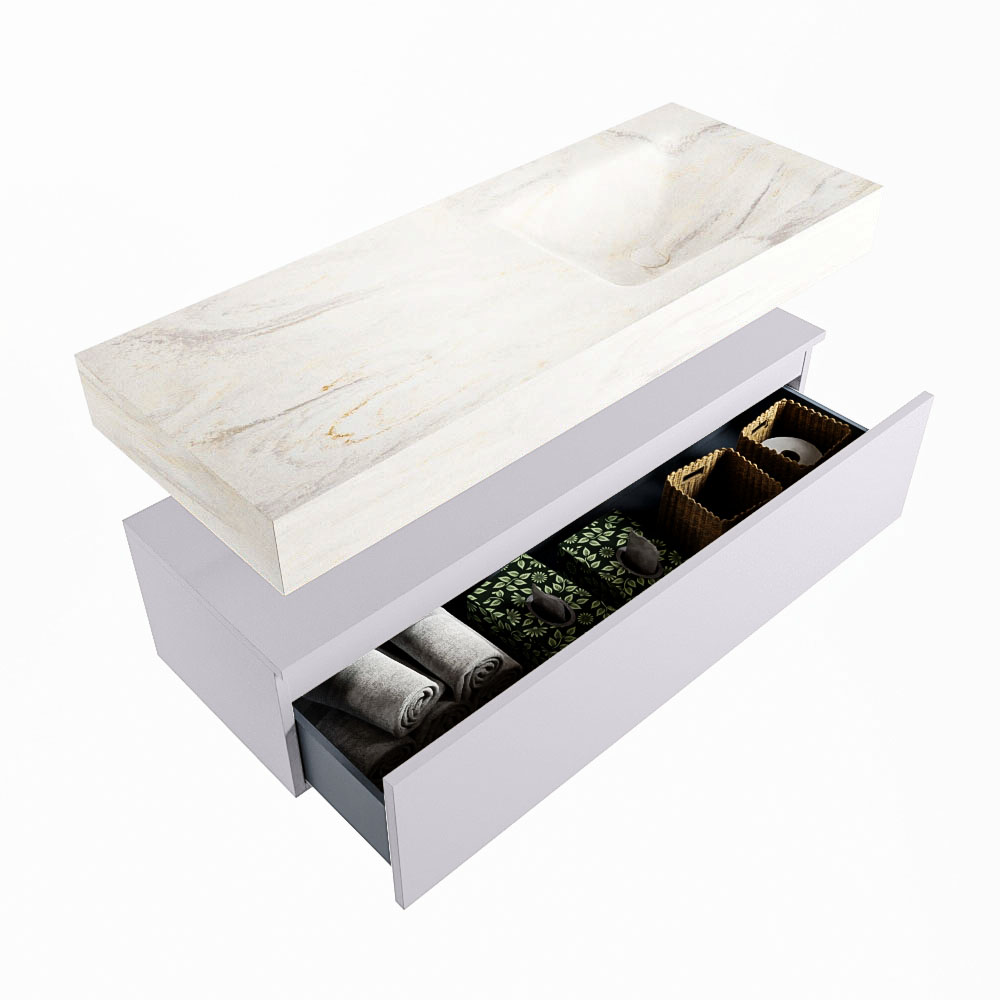 MONDIAZ ALAN-DLUX 120cm mueble de baño Cale 1 cajón. Lavabo CLOUD Derecho sin orificios color Ostra.