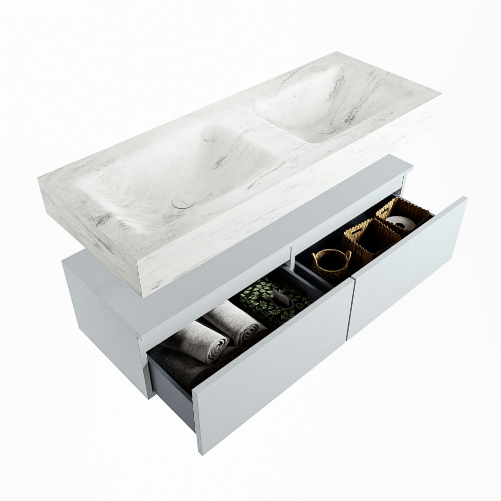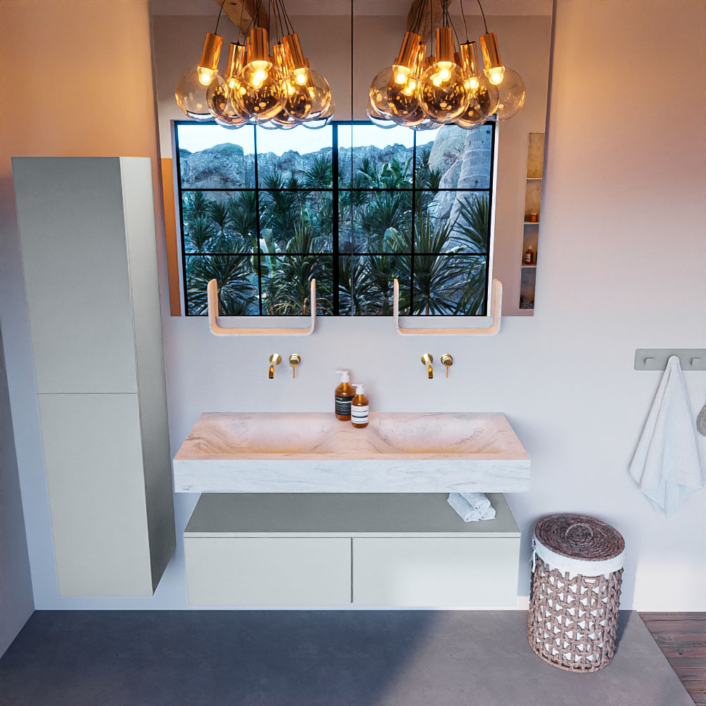 MONDIAZ ALAN-DLUX 120cm mueble de baño Clay 2 cajones. Lavabo CLOUD Doble sin orificios color Opalo.