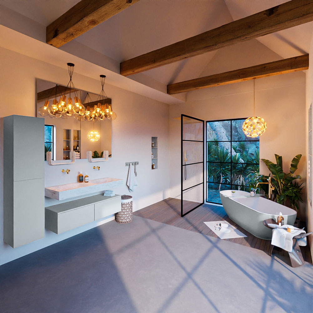 Cree un aspecto elegante y fantástico en su baño con el conjunto de muebles de baño Alan DLUX. El deslumbrante conjunto de muebles de baño ALAN-DLUX consta de un lavabo suspendido con suaves líneas orgánicas de CORIAN en Solid Surface marmolado combinado con el mueble de baño ALAN. El conjunto de muebles de baño ALAN-DLUX es adecuado para cualquier baño, ya sea pequeño o grande. Para completar completamente su baño, también hay disponibles varios accesorios en estos mármoles, como las repisas Mondiaz y los estantes de espejo.