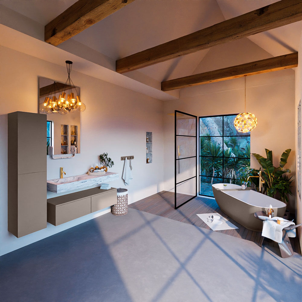 Cree un aspecto elegante y fantástico en su baño con el conjunto de muebles de baño Alan DLUX. El deslumbrante conjunto de muebles de baño ALAN-DLUX consta de un lavabo suspendido con suaves líneas orgánicas de CORIAN en Solid Surface marmolado combinado con el mueble de baño ALAN. El conjunto de muebles de baño ALAN-DLUX es adecuado para cualquier baño, ya sea pequeño o grande. Para completar completamente su baño, también hay disponibles varios accesorios en estos mármoles, como las repisas Mondiaz y los estantes de espejo.