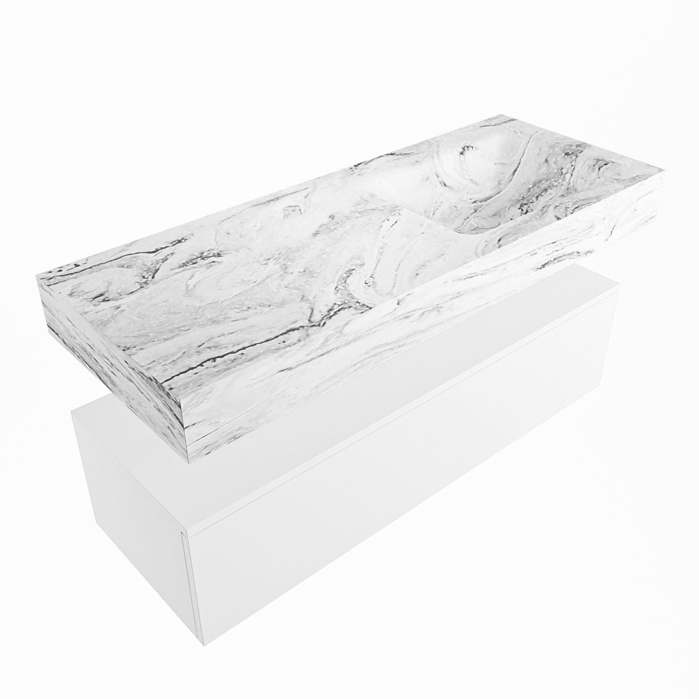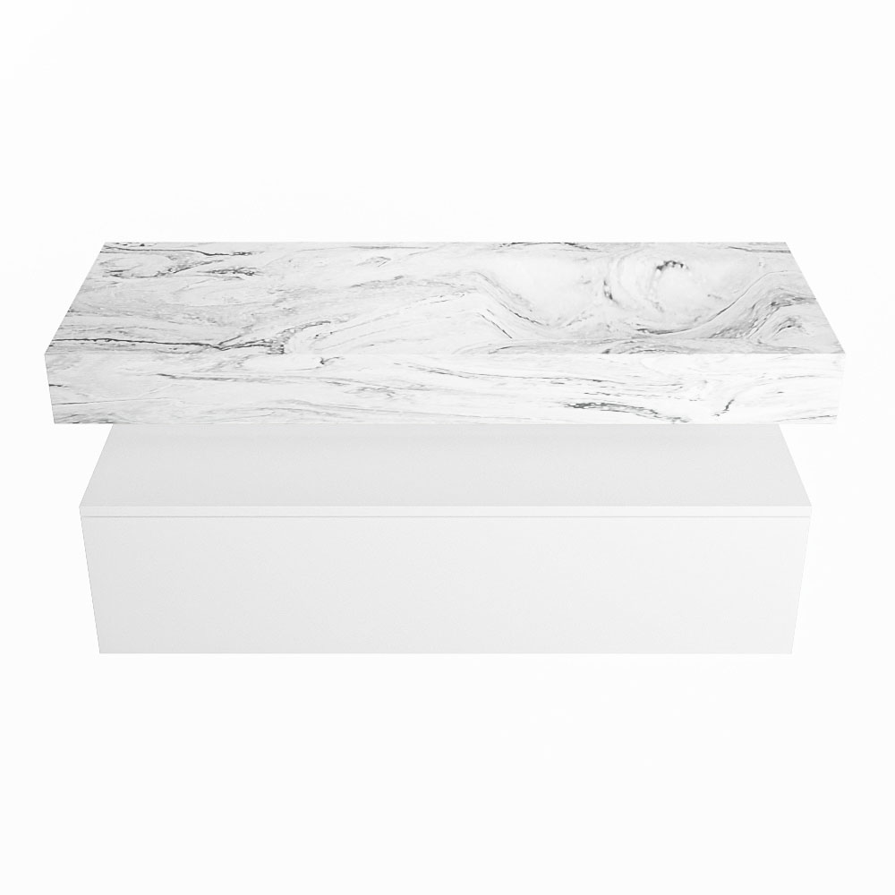 Cree un aspecto elegante y fantástico en su baño con el conjunto de muebles de baño Alan DLUX. El deslumbrante conjunto de muebles de baño ALAN-DLUX consta de un lavabo suspendido con suaves líneas orgánicas de CORIAN en Solid Surface marmolado combinado con el mueble de baño ALAN. El conjunto de muebles de baño ALAN-DLUX es adecuado para cualquier baño, ya sea pequeño o grande. Para completar completamente su baño, también hay disponibles varios accesorios en estos mármoles, como las repisas Mondiaz y los estantes de espejo.