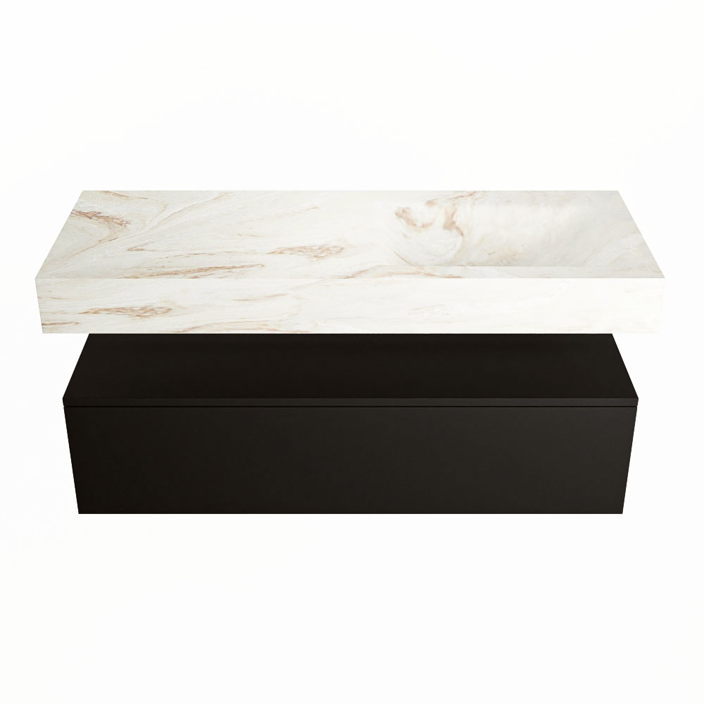 Cree un aspecto elegante y fantástico en su baño con el conjunto de muebles de baño Alan DLUX. El deslumbrante conjunto de muebles de baño ALAN-DLUX consta de un lavabo suspendido con suaves líneas orgánicas de CORIAN en Solid Surface marmolado combinado con el mueble de baño ALAN. El conjunto de muebles de baño ALAN-DLUX es adecuado para cualquier baño, ya sea pequeño o grande. Para completar completamente su baño, también hay disponibles varios accesorios en estos mármoles, como las repisas Mondiaz y los estantes de espejo.