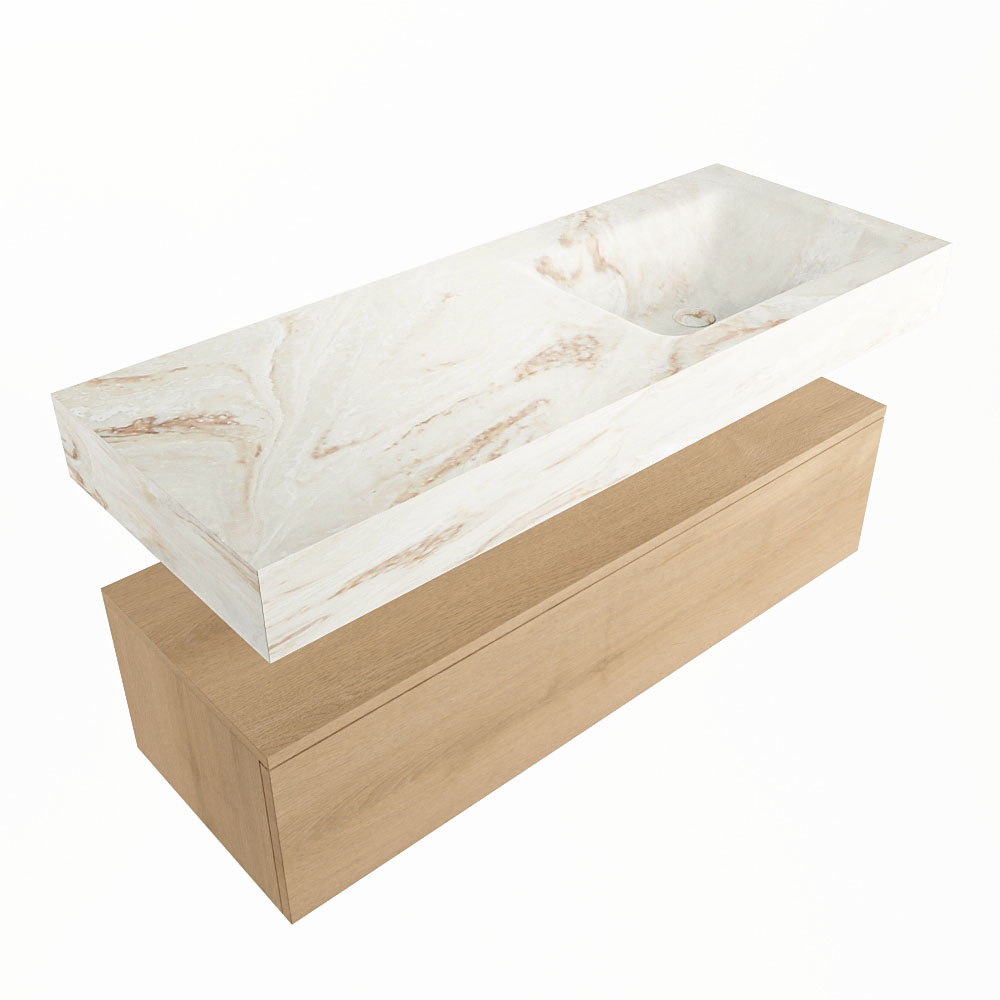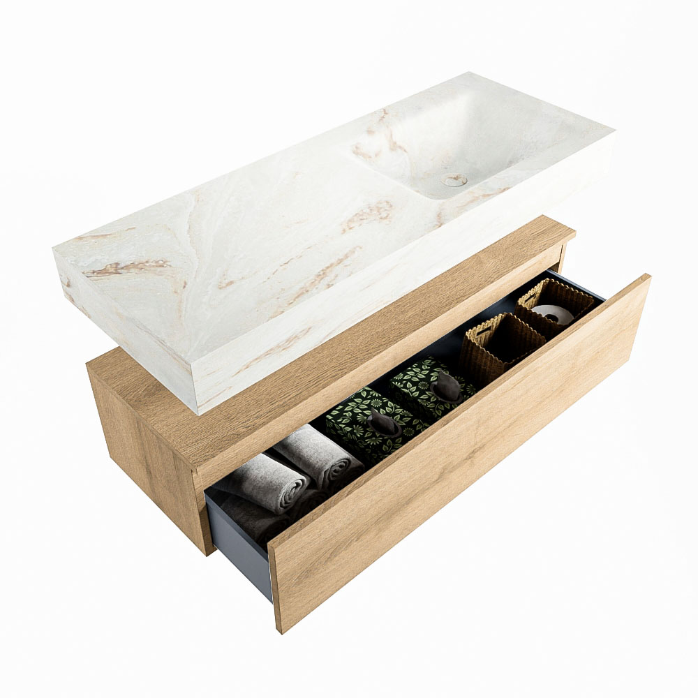 Cree un aspecto elegante y fantástico en su baño con el conjunto de muebles de baño Alan DLUX. El deslumbrante conjunto de muebles de baño ALAN-DLUX consta de un lavabo suspendido con suaves líneas orgánicas de CORIAN en Solid Surface marmolado combinado con el mueble de baño ALAN. El conjunto de muebles de baño ALAN-DLUX es adecuado para cualquier baño, ya sea pequeño o grande. Para completar completamente su baño, también hay disponibles varios accesorios en estos mármoles, como las repisas Mondiaz y los estantes de espejo.
