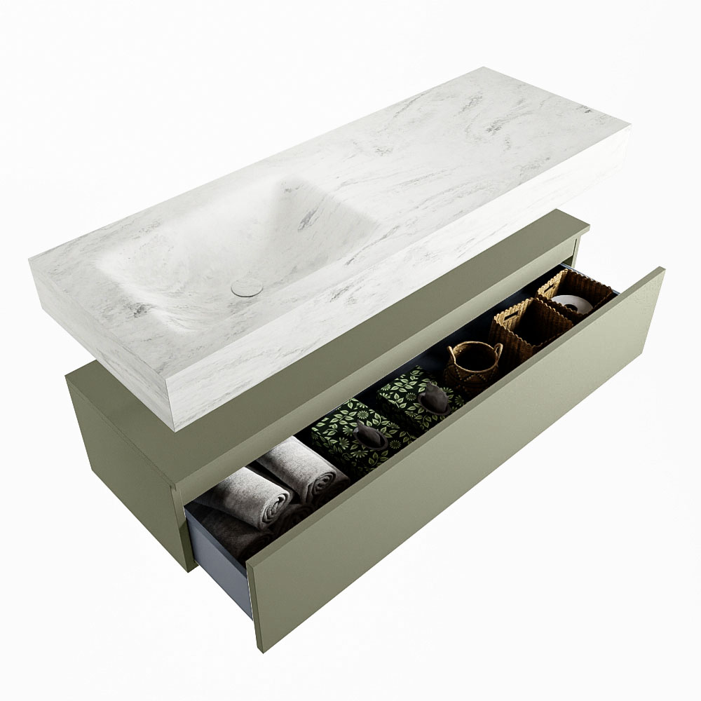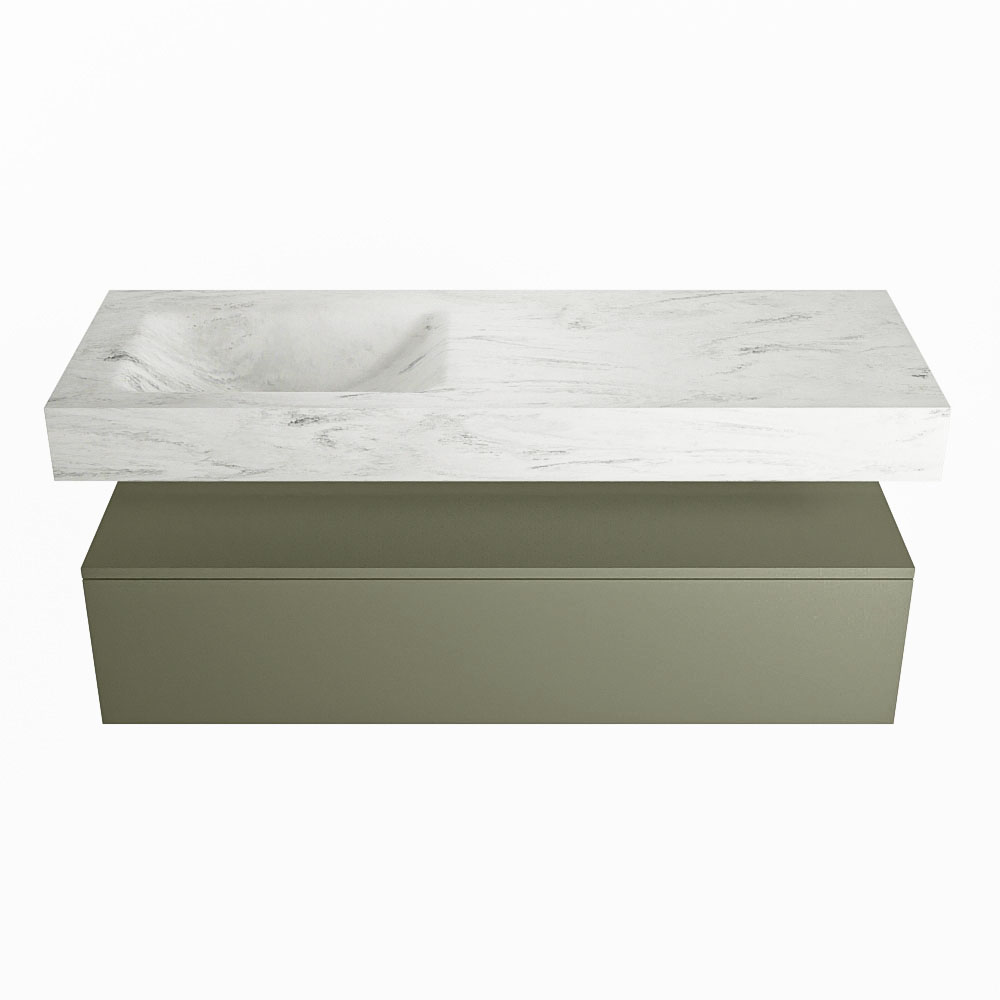 MONDIAZ ALAN-DLUX 130cm mueble de baño Army 1 cajón. Lavabo CLOUD Izquierda sin orificios color Opalo.