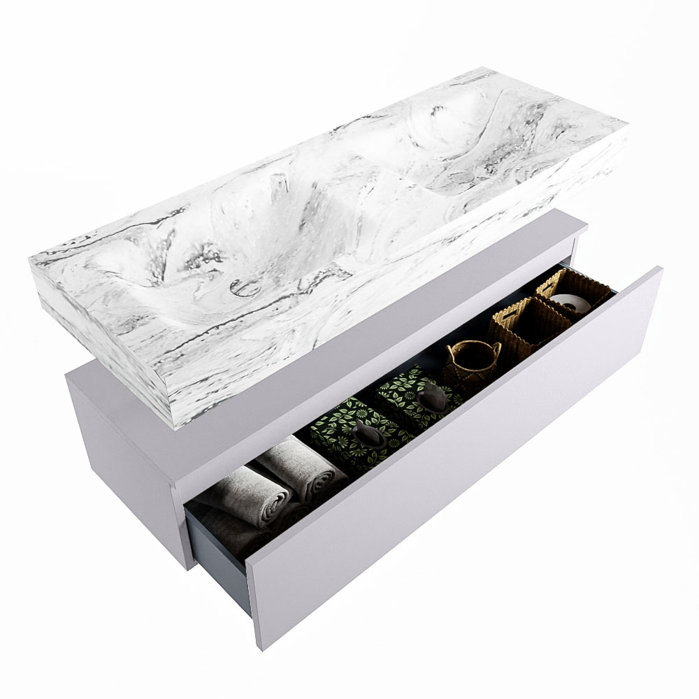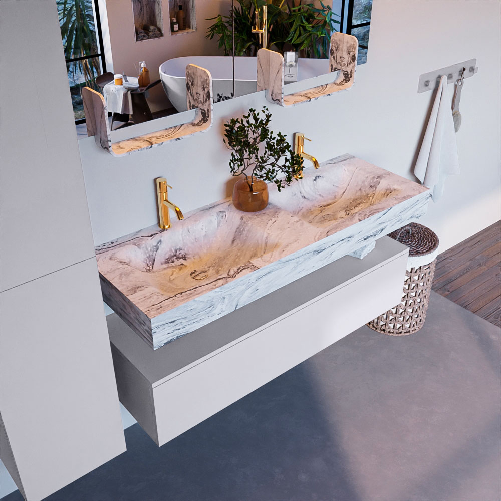 MONDIAZ ALAN-DLUX 130cm mueble de baño Cale 1 cajón. Lavabo CLOUD Doble 2 orificios color Glace.