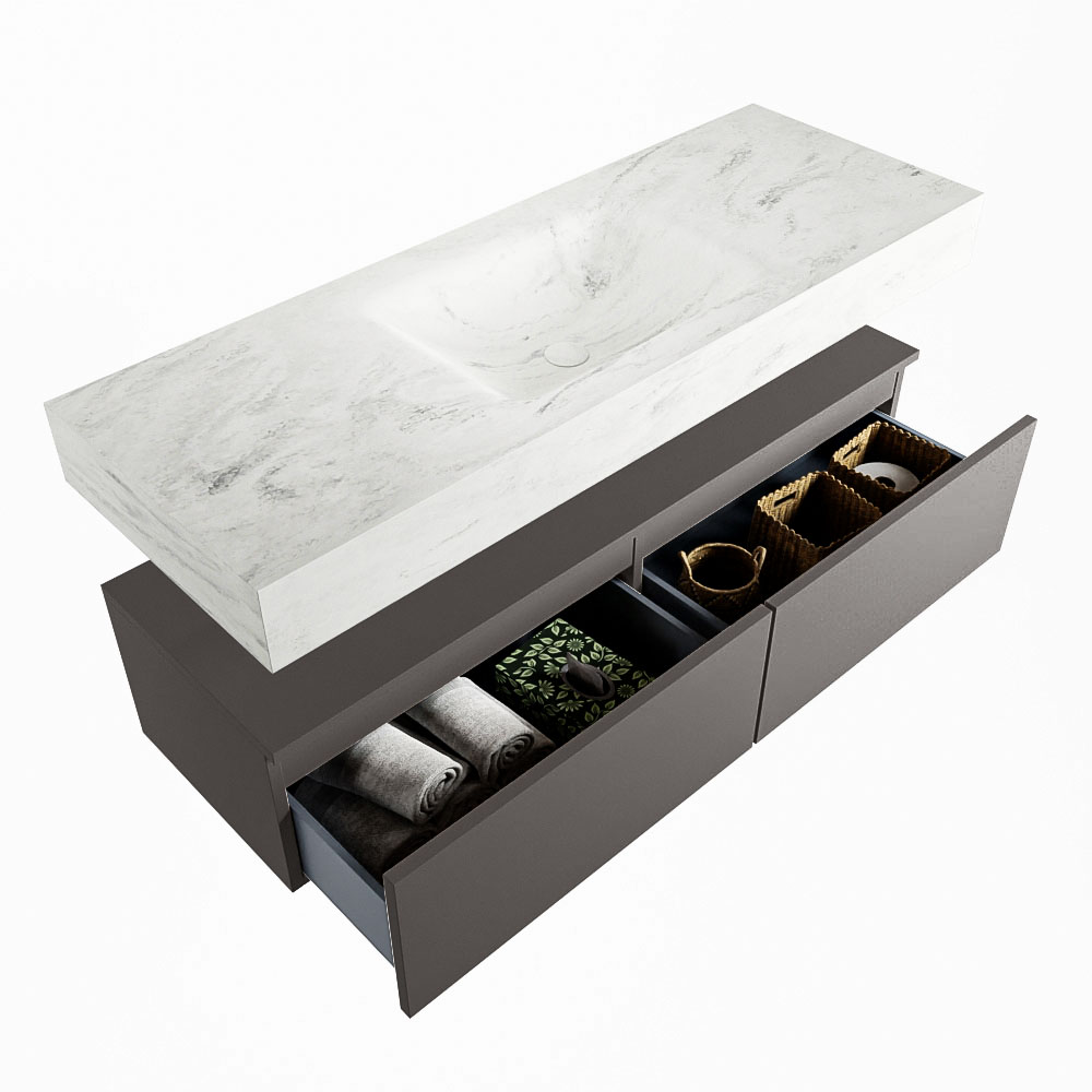 MONDIAZ ALAN-DLUX 130cm mueble de baño Dark Grey 2 cajones. Lavabo CLOUD Centro sin orificios color Opalo.