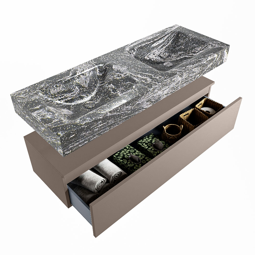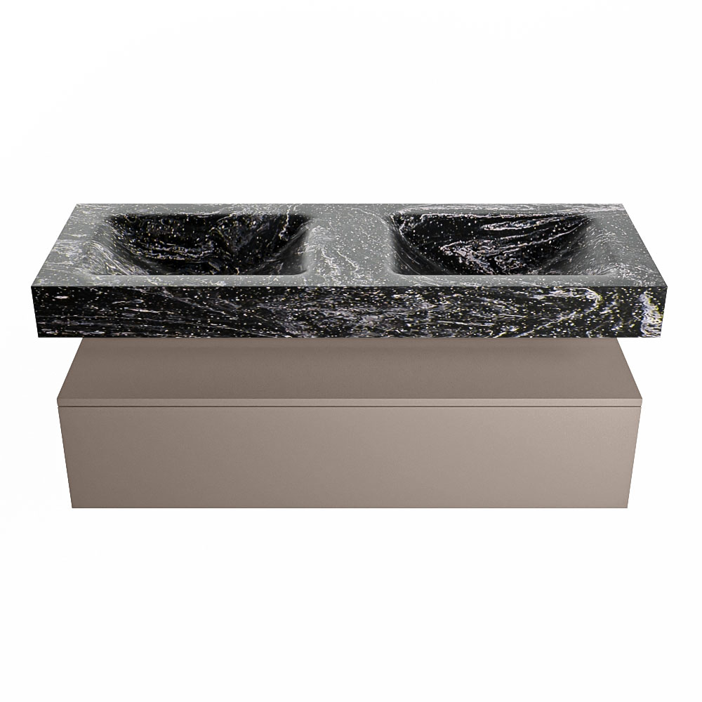 MONDIAZ ALAN-DLUX 130cm mueble de baño Smoke 1 cajón. Lavabo CLOUD Doble sin orificios color Lava.