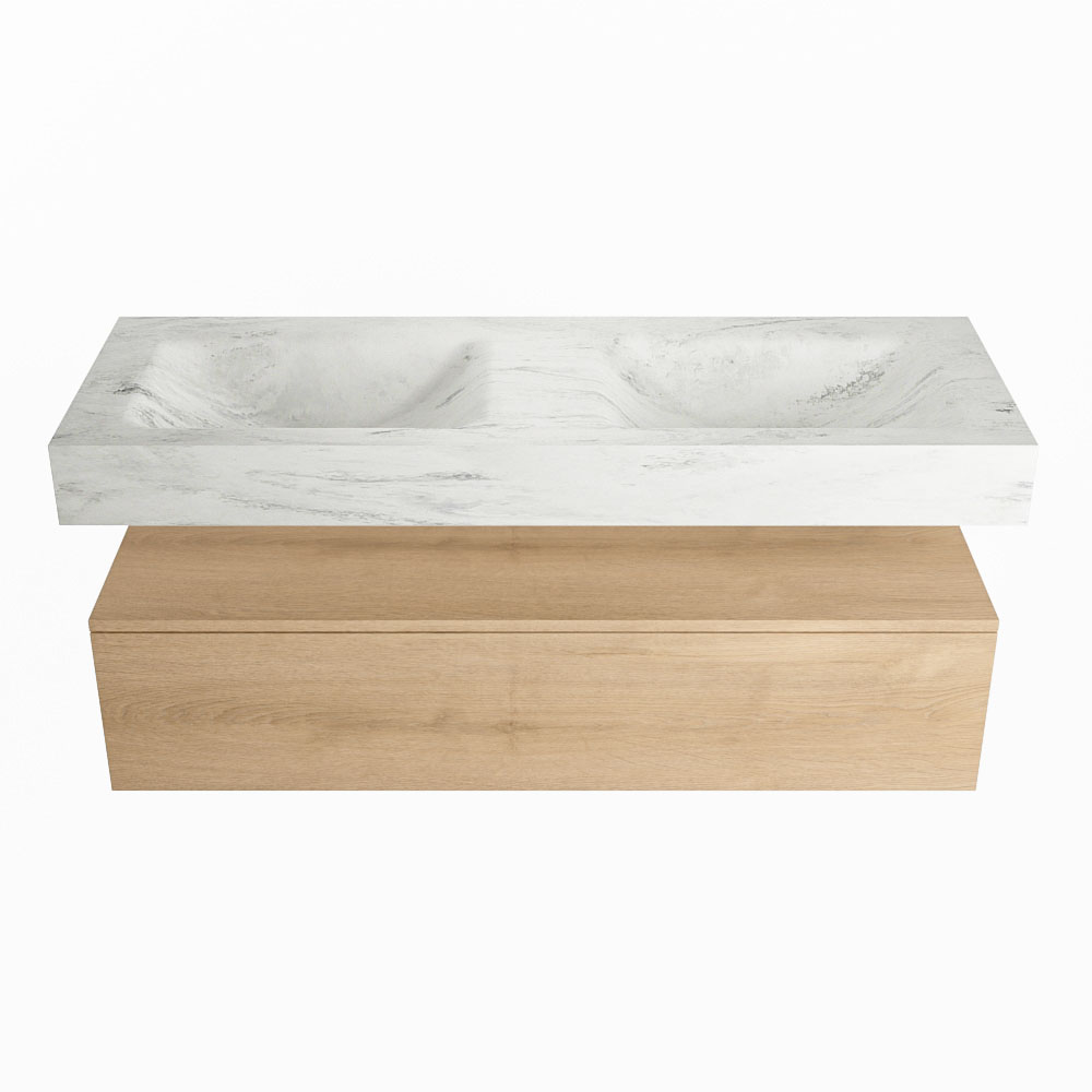 Cree un aspecto elegante y fantástico en su baño con el conjunto de muebles de baño Alan DLUX. El deslumbrante conjunto de muebles de baño ALAN-DLUX consta de un lavabo suspendido con suaves líneas orgánicas de CORIAN en Solid Surface marmolado combinado con el mueble de baño ALAN. El conjunto de muebles de baño ALAN-DLUX es adecuado para cualquier baño, ya sea pequeño o grande. Para completar completamente su baño, también hay disponibles varios accesorios en estos mármoles, como las repisas Mondiaz y los estantes de espejo.