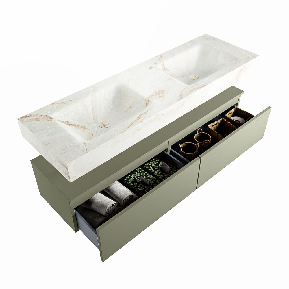 Cree un aspecto elegante y fantástico en su baño con el conjunto de muebles de baño Alan DLUX. El deslumbrante conjunto de muebles de baño ALAN-DLUX consta de un lavabo suspendido con suaves líneas orgánicas de CORIAN en Solid Surface marmolado combinado con el mueble de baño ALAN. El conjunto de muebles de baño ALAN-DLUX es adecuado para cualquier baño, ya sea pequeño o grande. Para completar completamente su baño, también hay disponibles varios accesorios en estos mármoles, como las repisas Mondiaz y los estantes de espejo.