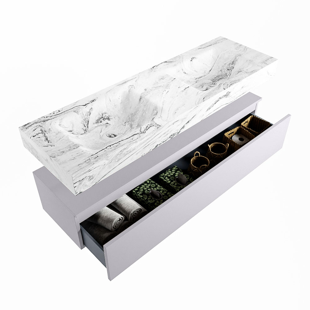 MONDIAZ ALAN-DLUX 150cm mueble de baño Cale 1 cajón. Lavabo CLOUD Doble 2 orificios color Glace.