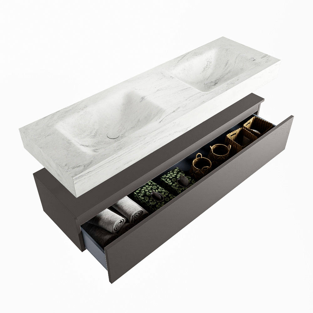 MONDIAZ ALAN-DLUX 150cm mueble de baño Dark Grey 1 cajón. Lavabo CLOUD Doble sin orificios color Opalo.