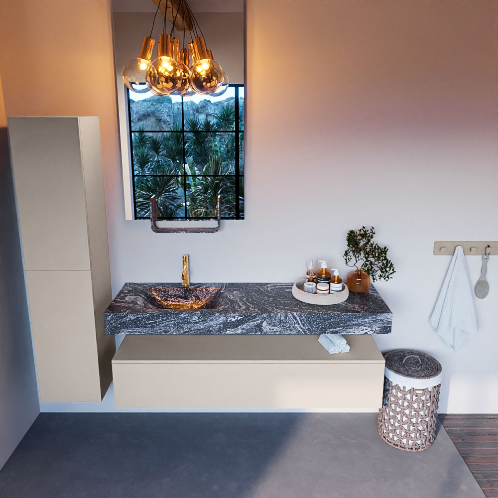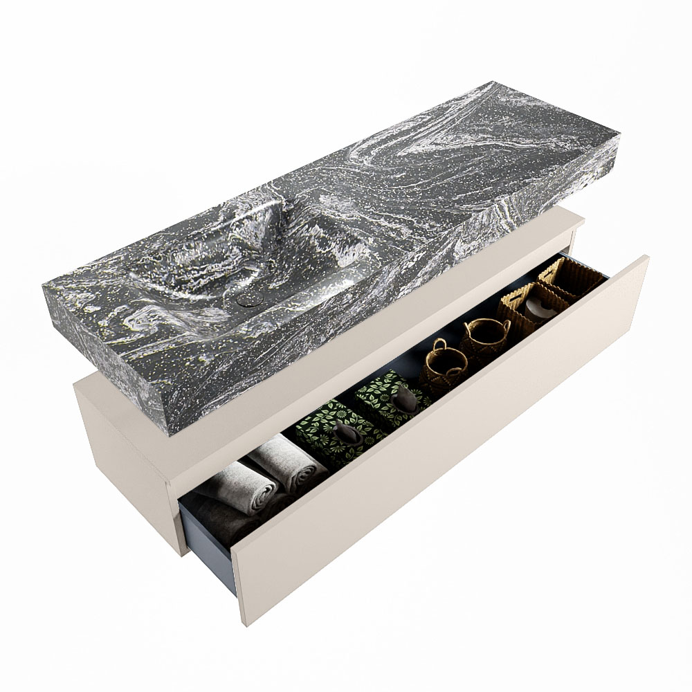 MONDIAZ ALAN-DLUX 150cm mueble de baño Linen 1 cajón. Lavabo CLOUD Izquierda 1 orificio color Lava.