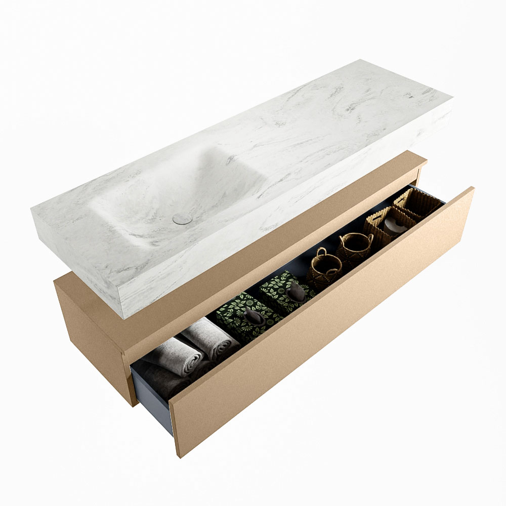 MONDIAZ ALAN-DLUX 150cm mueble de baño Oro 1 cajón. Lavabo CLOUD Izquierda 1 orificio color Opalo.