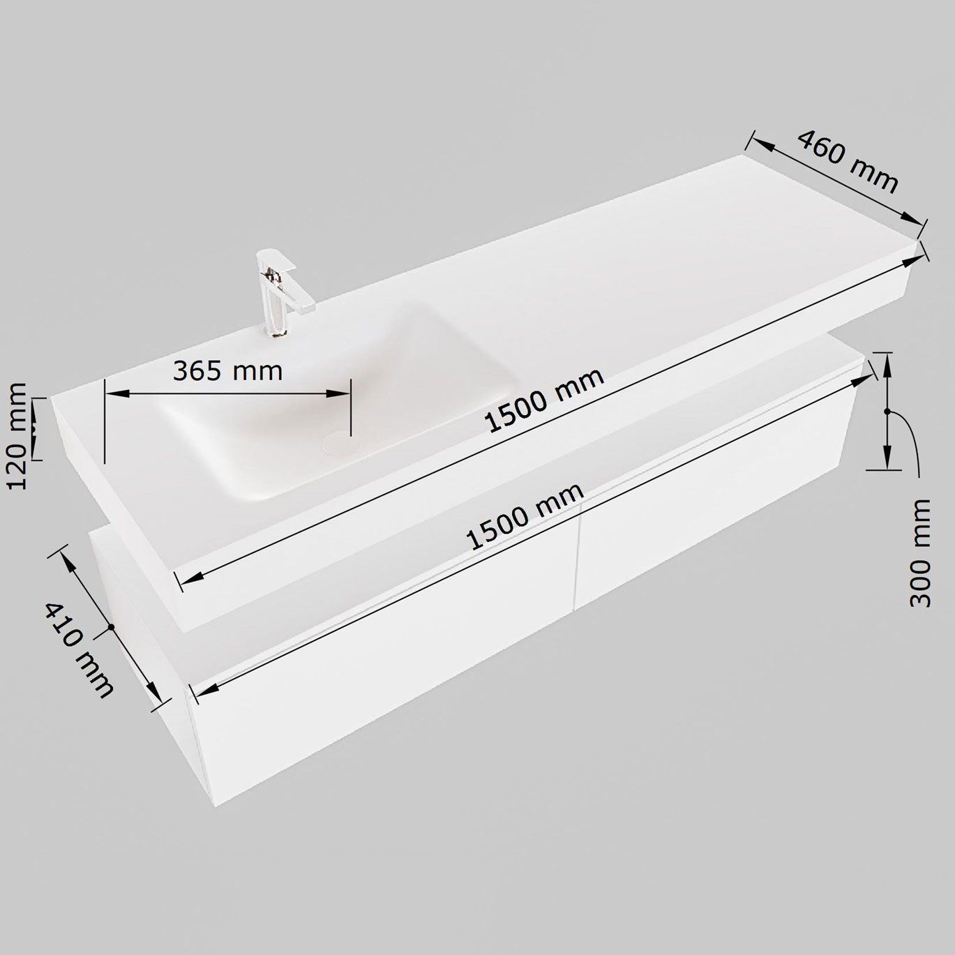 - Ancho del lavabo aprox.: 150cm