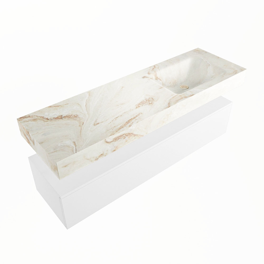 MONDIAZ ALAN-DLUX 150cm mueble de baño Talc 1 cajón. Lavabo CLOUD Derecho sin orificios color Frappe.
