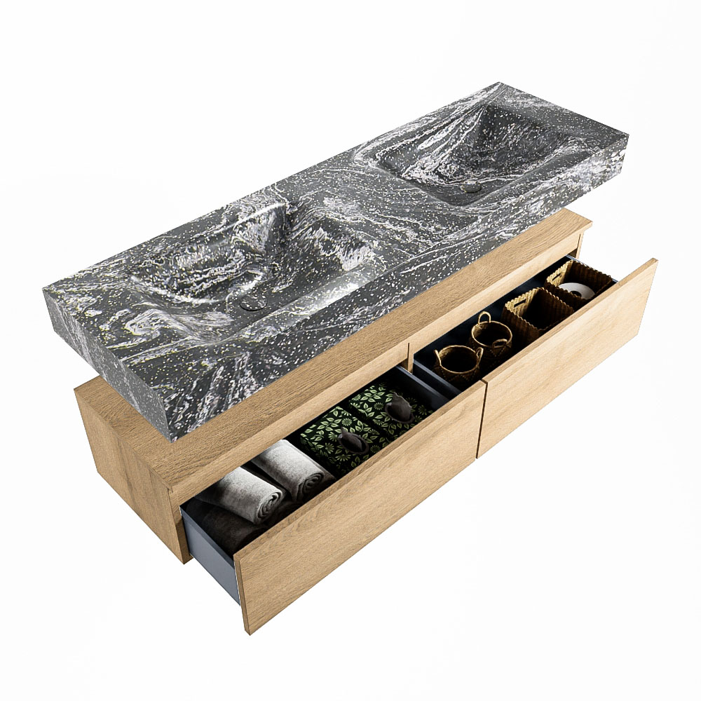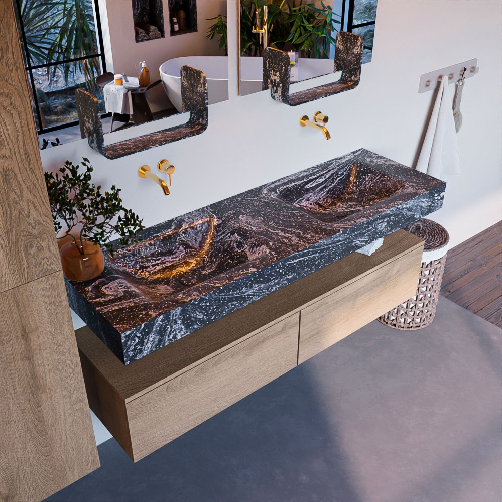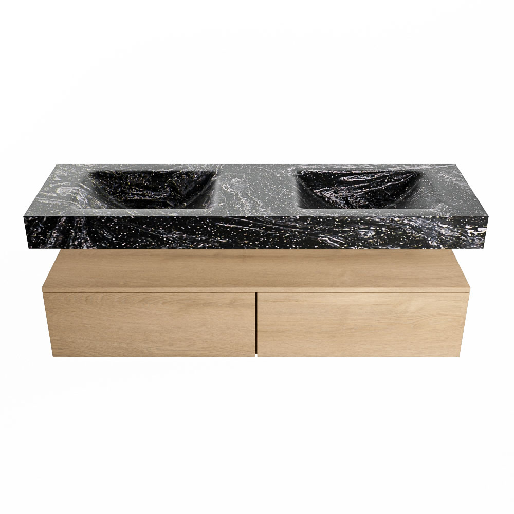 MONDIAZ ALAN-DLUX 150cm mueble de baño Washed Oak 2 cajones. Lavabo CLOUD Doble sin orificios color Lava.