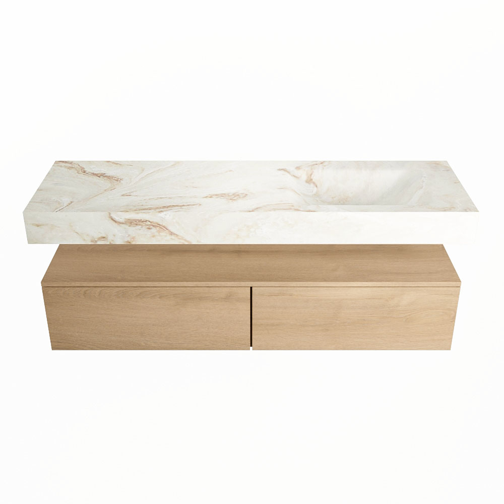 Cree un aspecto elegante y fantástico en su baño con el conjunto de muebles de baño Alan DLUX. El deslumbrante conjunto de muebles de baño ALAN-DLUX consta de un lavabo suspendido con suaves líneas orgánicas de CORIAN en Solid Surface marmolado combinado con el mueble de baño ALAN. El conjunto de muebles de baño ALAN-DLUX es adecuado para cualquier baño, ya sea pequeño o grande. Para completar completamente su baño, también hay disponibles varios accesorios en estos mármoles, como las repisas Mondiaz y los estantes de espejo.