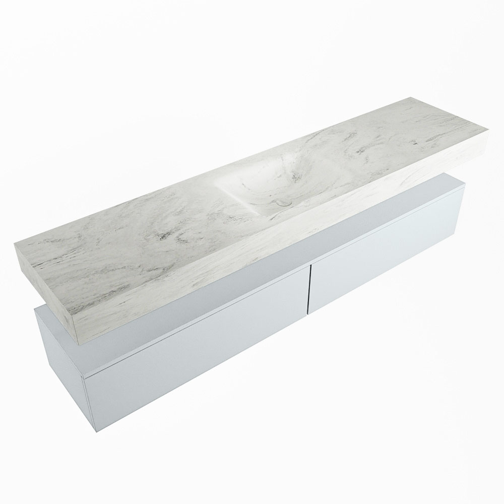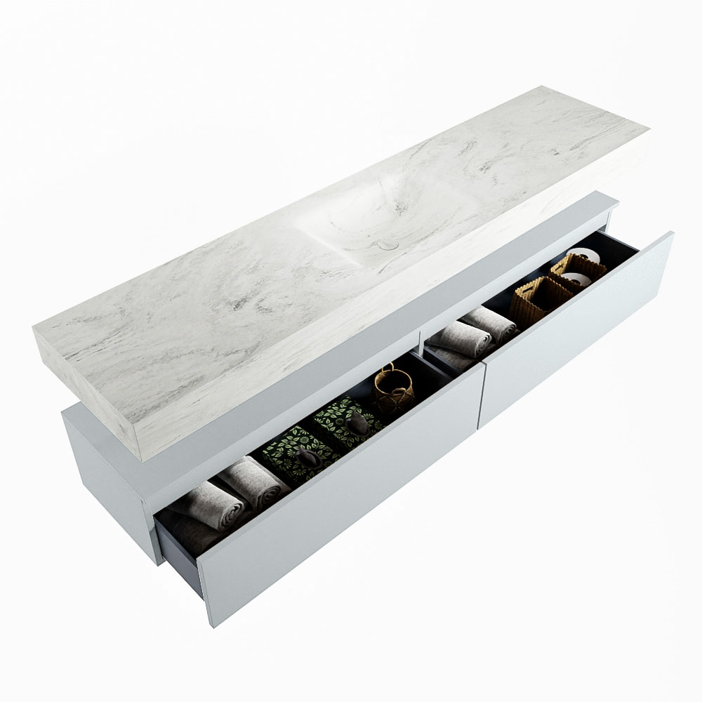 Cree un aspecto elegante y fantástico en su baño con el conjunto de muebles de baño Alan DLUX. El deslumbrante conjunto de muebles de baño ALAN-DLUX consta de un lavabo suspendido con suaves líneas orgánicas de CORIAN en Solid Surface marmolado combinado con el mueble de baño ALAN. El conjunto de muebles de baño ALAN-DLUX es adecuado para cualquier baño, ya sea pequeño o grande. Para completar completamente su baño, también hay disponibles varios accesorios en estos mármoles, como las repisas Mondiaz y los estantes de espejo.