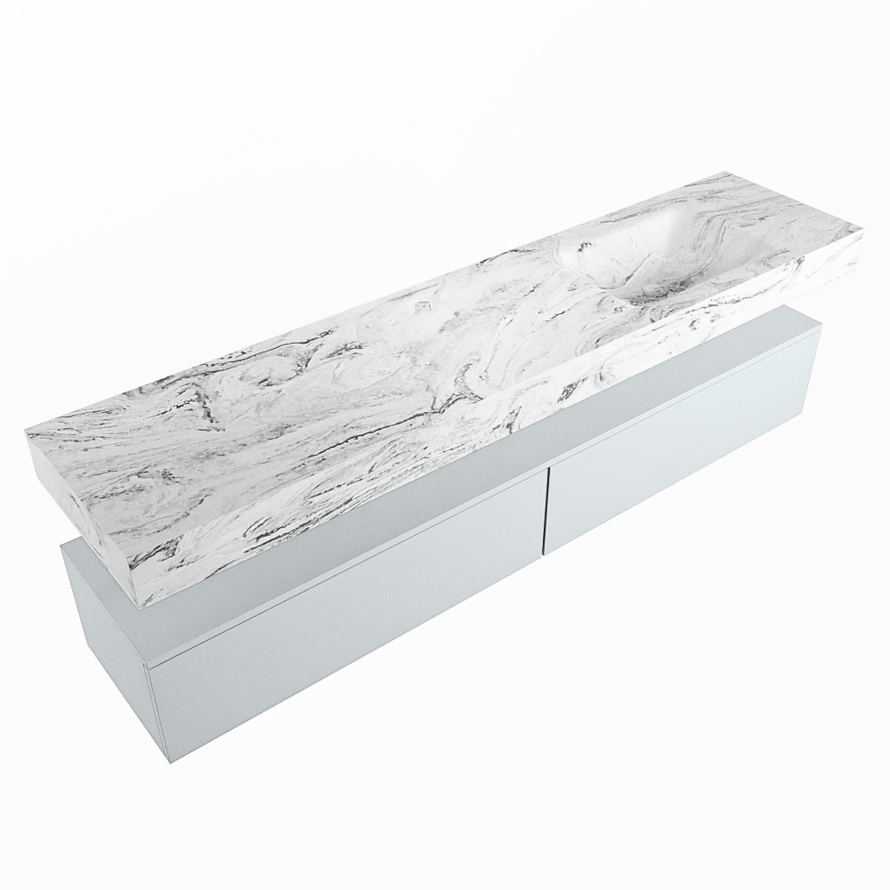 Cree un aspecto elegante y fantástico en su baño con el conjunto de muebles de baño Alan DLUX. El deslumbrante conjunto de muebles de baño ALAN-DLUX consta de un lavabo suspendido con suaves líneas orgánicas de CORIAN en Solid Surface marmolado combinado con el mueble de baño ALAN. El conjunto de muebles de baño ALAN-DLUX es adecuado para cualquier baño, ya sea pequeño o grande. Para completar completamente su baño, también hay disponibles varios accesorios en estos mármoles, como las repisas Mondiaz y los estantes de espejo.