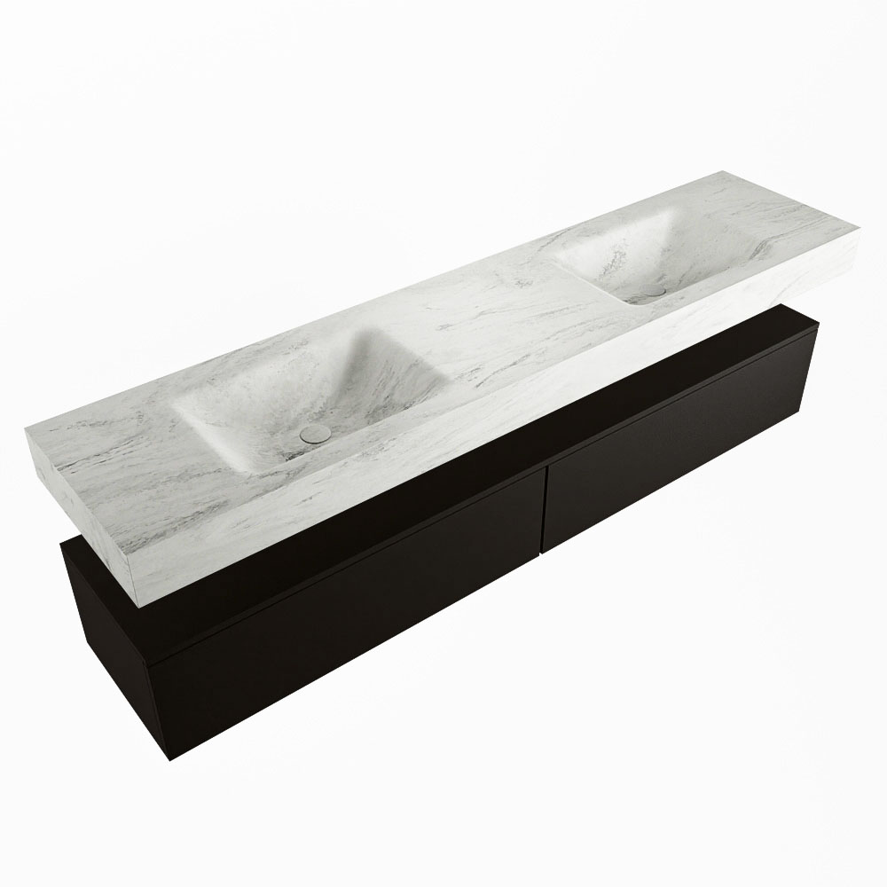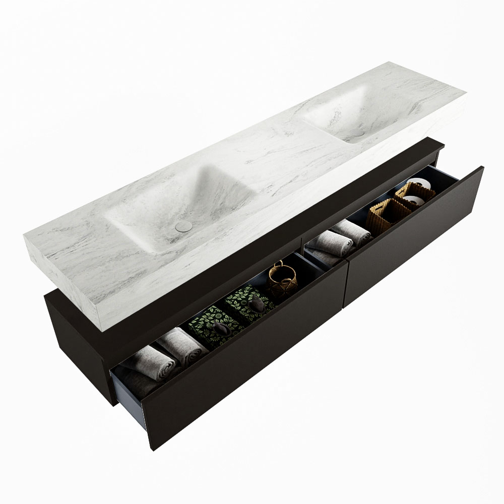 Cree un aspecto elegante y fantástico en su baño con el conjunto de muebles de baño Alan DLUX. El deslumbrante conjunto de muebles de baño ALAN-DLUX consta de un lavabo suspendido con suaves líneas orgánicas de CORIAN en Solid Surface marmolado combinado con el mueble de baño ALAN. El conjunto de muebles de baño ALAN-DLUX es adecuado para cualquier baño, ya sea pequeño o grande. Para completar completamente su baño, también hay disponibles varios accesorios en estos mármoles, como las repisas Mondiaz y los estantes de espejo.