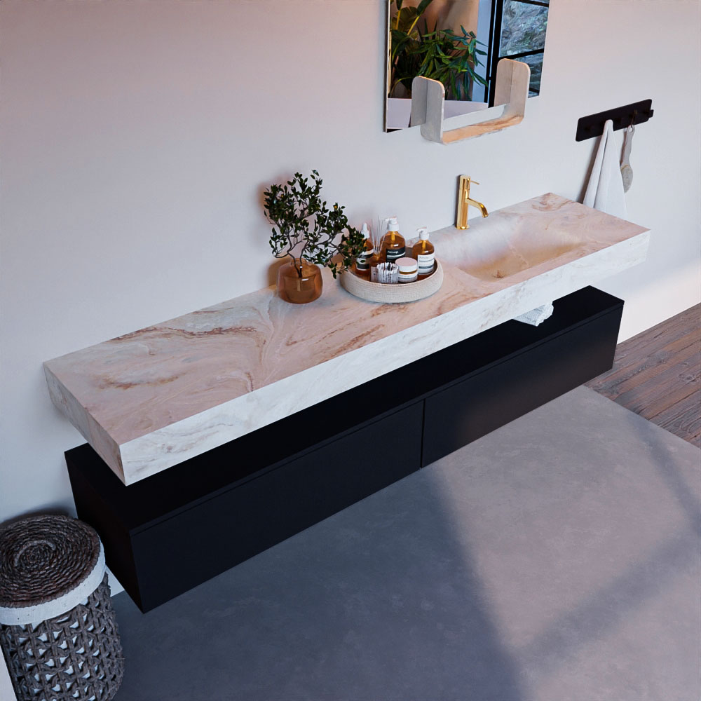 MONDIAZ ALAN-DLUX 200cm mueble de baño Urban 2 cajones. Lavabo CLOUD Derecho 1 orificio color Frappe.