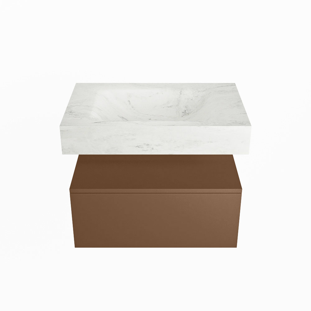 Cree un aspecto elegante y fantástico en su baño con el conjunto de muebles de baño Alan DLUX. El deslumbrante conjunto de muebles de baño ALAN-DLUX consta de un lavabo suspendido con suaves líneas orgánicas de CORIAN en Solid Surface marmolado combinado con el mueble de baño ALAN. El conjunto de muebles de baño ALAN-DLUX es adecuado para cualquier baño, ya sea pequeño o grande. Para completar completamente su baño, también hay disponibles varios accesorios en estos mármoles, como las repisas Mondiaz y los estantes de espejo.