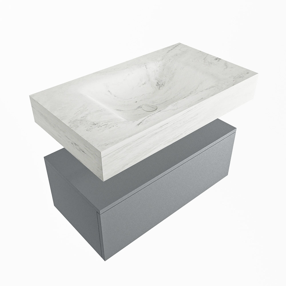 Cree un aspecto elegante y fantástico en su baño con el conjunto de muebles de baño Alan DLUX. El deslumbrante conjunto de muebles de baño ALAN-DLUX consta de un lavabo suspendido con suaves líneas orgánicas de CORIAN en Solid Surface marmolado combinado con el mueble de baño ALAN. El conjunto de muebles de baño ALAN-DLUX es adecuado para cualquier baño, ya sea pequeño o grande. Para completar completamente su baño, también hay disponibles varios accesorios en estos mármoles, como las repisas Mondiaz y los estantes de espejo.