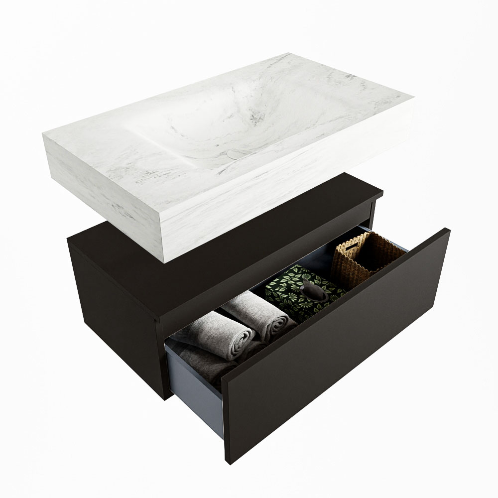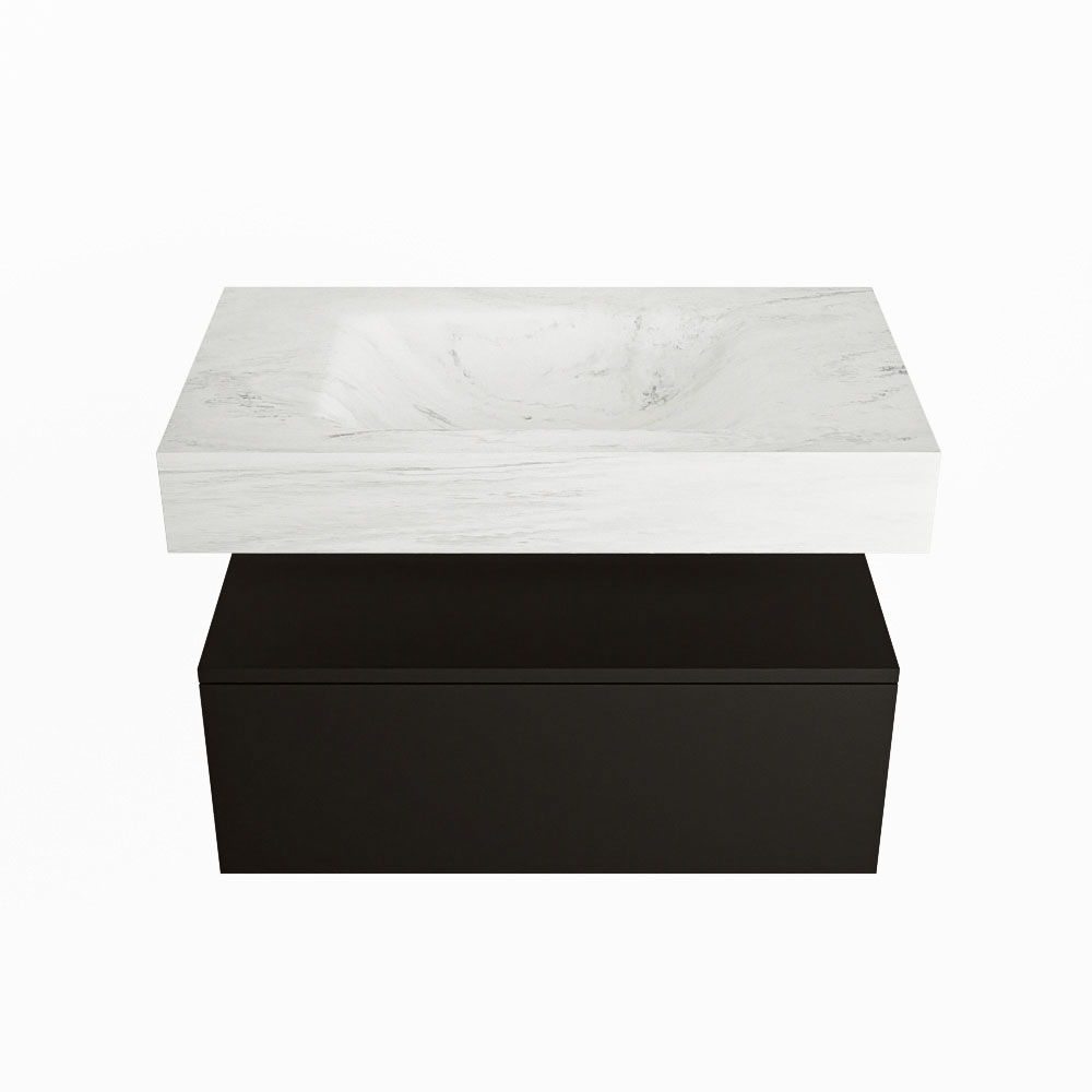 Cree un aspecto elegante y fantástico en su baño con el conjunto de muebles de baño Alan DLUX. El deslumbrante conjunto de muebles de baño ALAN-DLUX consta de un lavabo suspendido con suaves líneas orgánicas de CORIAN en Solid Surface marmolado combinado con el mueble de baño ALAN. El conjunto de muebles de baño ALAN-DLUX es adecuado para cualquier baño, ya sea pequeño o grande. Para completar completamente su baño, también hay disponibles varios accesorios en estos mármoles, como las repisas Mondiaz y los estantes de espejo.