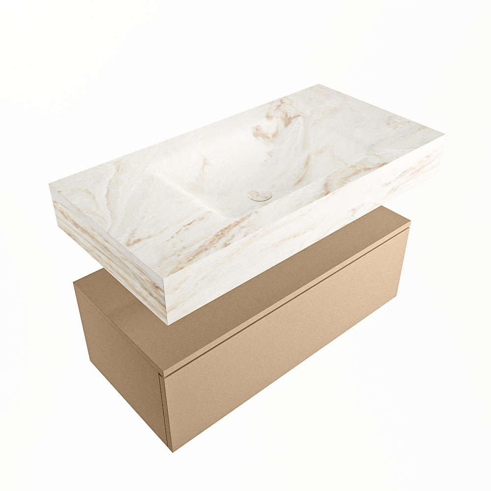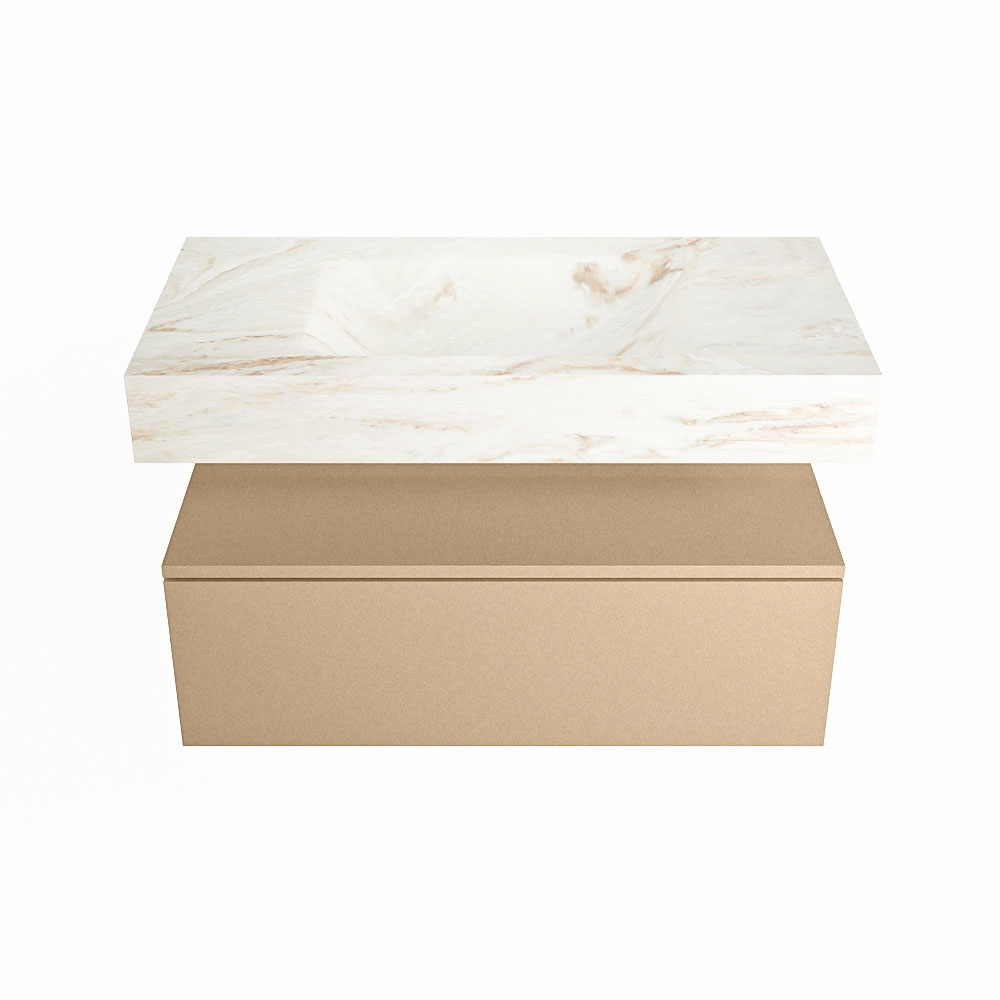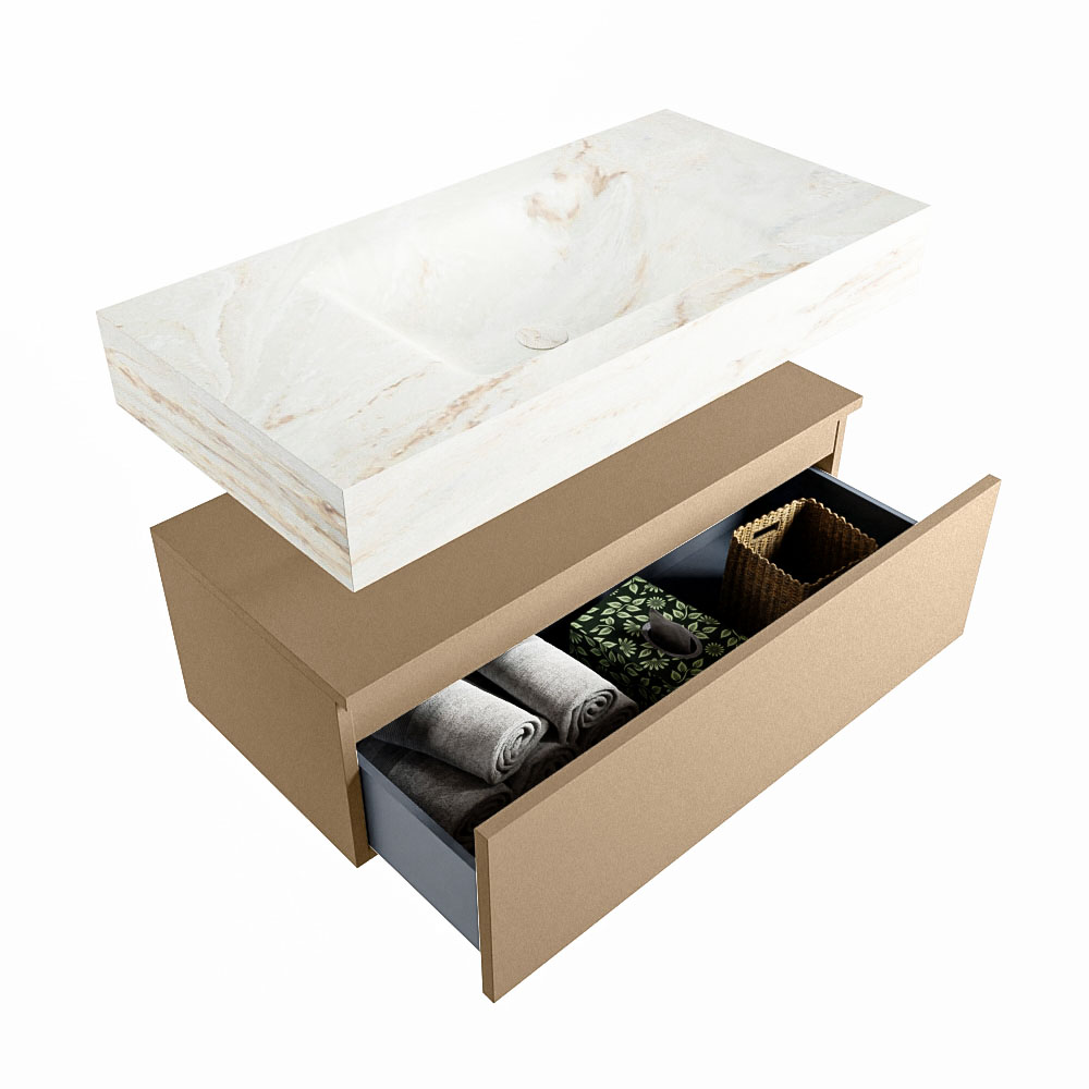 Cree un aspecto elegante y fantástico en su baño con el conjunto de muebles de baño Alan DLUX. El deslumbrante conjunto de muebles de baño ALAN-DLUX consta de un lavabo suspendido con suaves líneas orgánicas de CORIAN en Solid Surface marmolado combinado con el mueble de baño ALAN. El conjunto de muebles de baño ALAN-DLUX es adecuado para cualquier baño, ya sea pequeño o grande. Para completar completamente su baño, también hay disponibles varios accesorios en estos mármoles, como las repisas Mondiaz y los estantes de espejo.