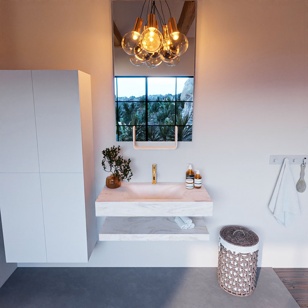 MONDIAZ ALAN-DLUX 90cm estante Ostra. Lavabo suspendido CLOUD Centro 1 orificio color Ostra.