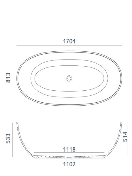 Bañera exenta Solid Surface Dolotek lech 170,4 X 81,3 x 53,3 cm