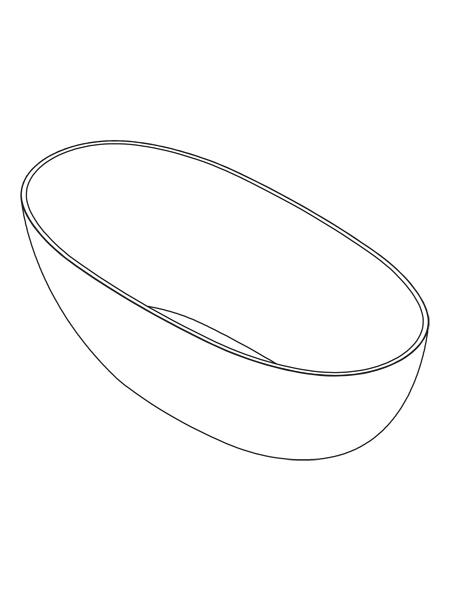 Bañera de libre instalación sin rebosadero interno. Una bañera de líneas curvas con una frágil curvatura en los bordes.