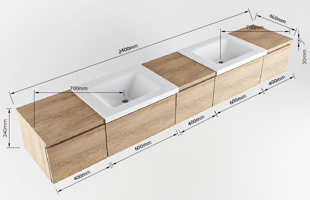 El mueble de baño Bukla combina un lavabo de Solid Surface con una encimera en dos tonos de madera. De esta manera, se logra una hermosa separación entre la zona húmeda y, en el medio o al lado, una hermosa tonalidad de madera que agrega mucha atmósfera y calidez al baño. Con el mueble de baño Bukla, puede crear una variedad infinita de combinaciones y con todas estas posibilidades, puede hacer su propia pieza única que atraerá todas las miradas.