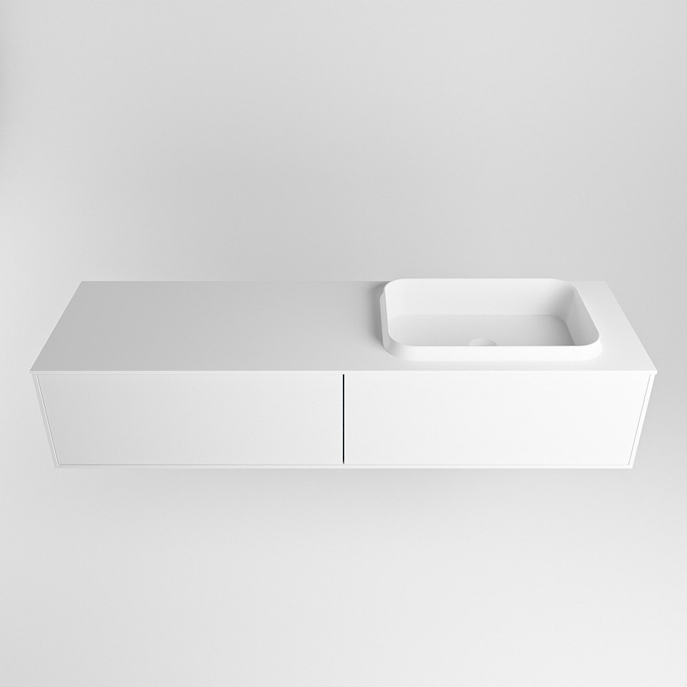 El lavabo de inserción tiene un borde elevado con un lavamanos extra grande y profundo. Las formas redondas del lavamanos emanan una suavidad lujosa. La ubicación del grifo del lavabo en la esquina del lavamanos añade un efecto juguetón adicional. El mueble de baño del conjunto ERIN cuenta con un cajón “push to open”. Esto le proporciona al mueble de baño una apariencia hermosa y aerodinámica que se adapta a cualquier estilo de baño.