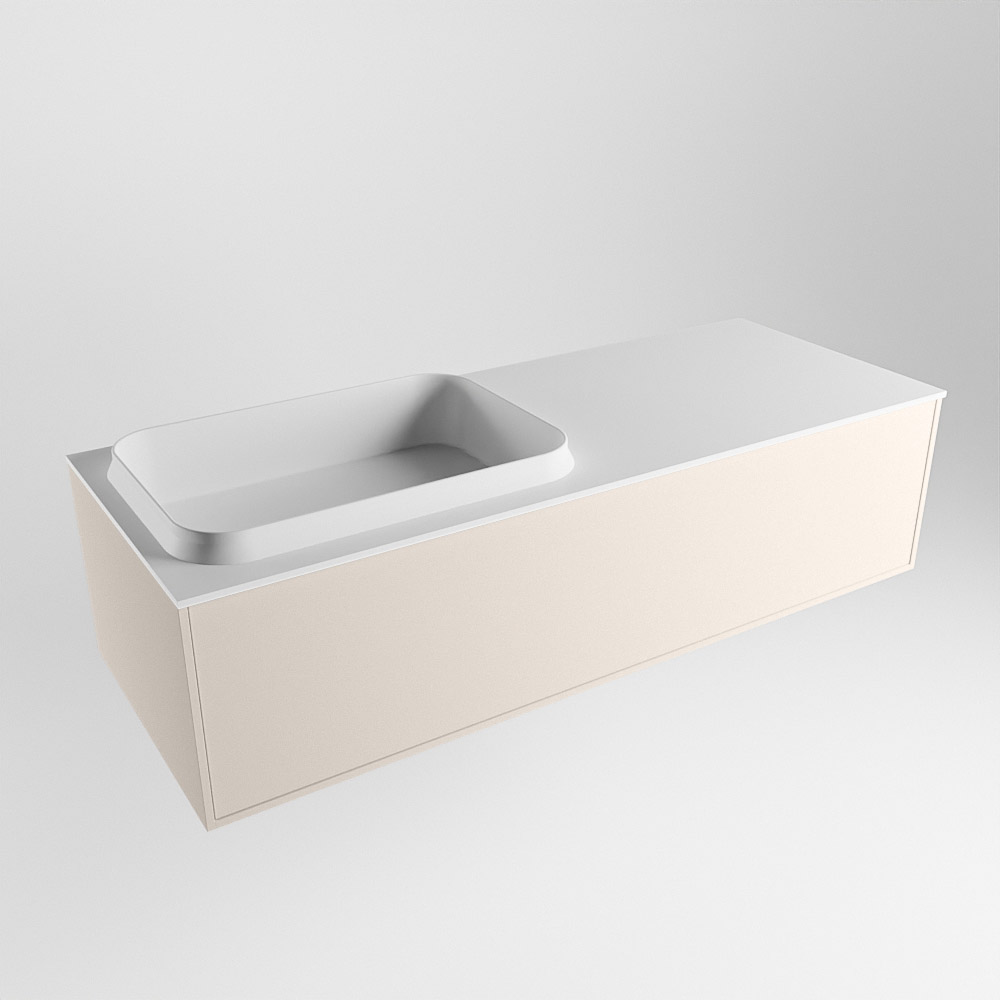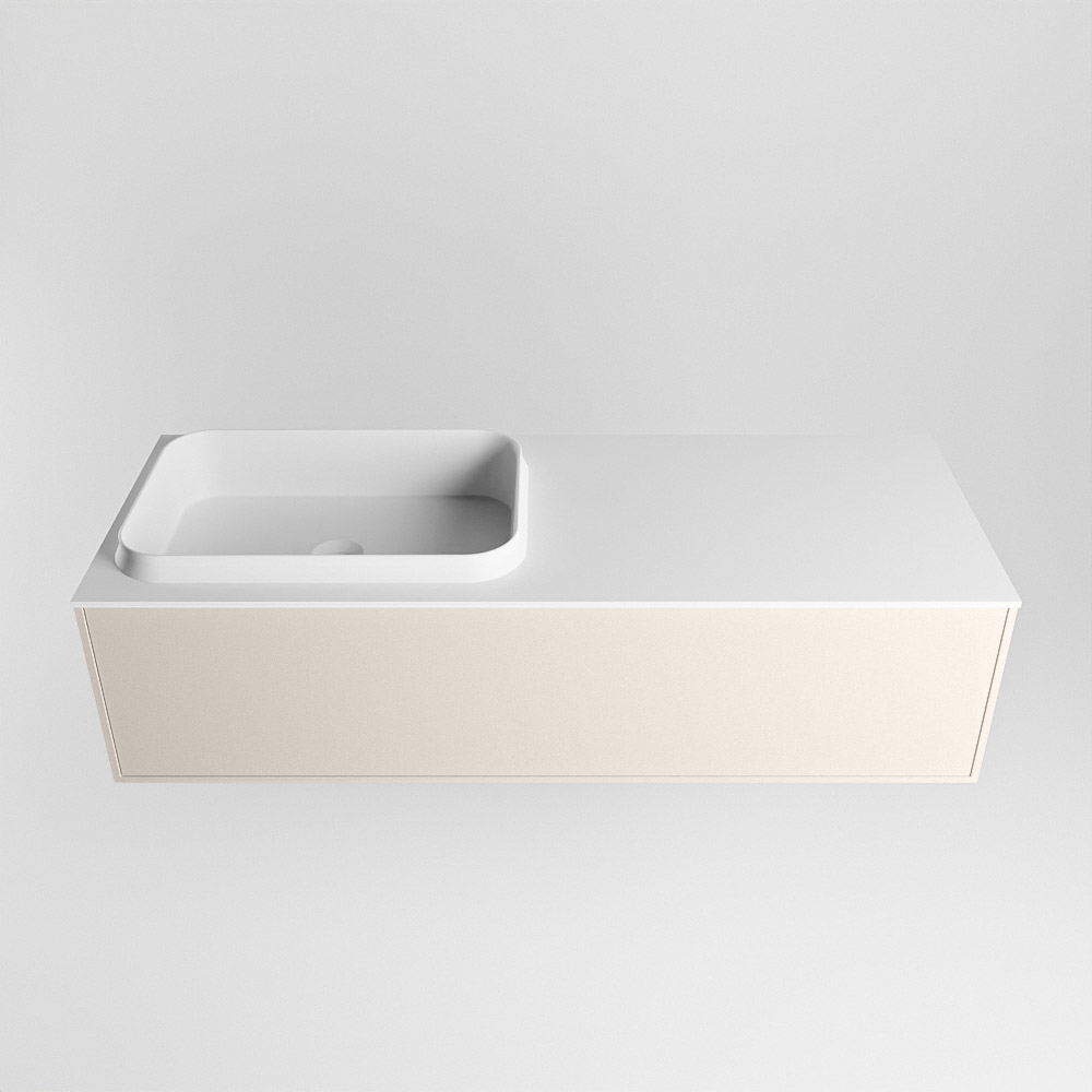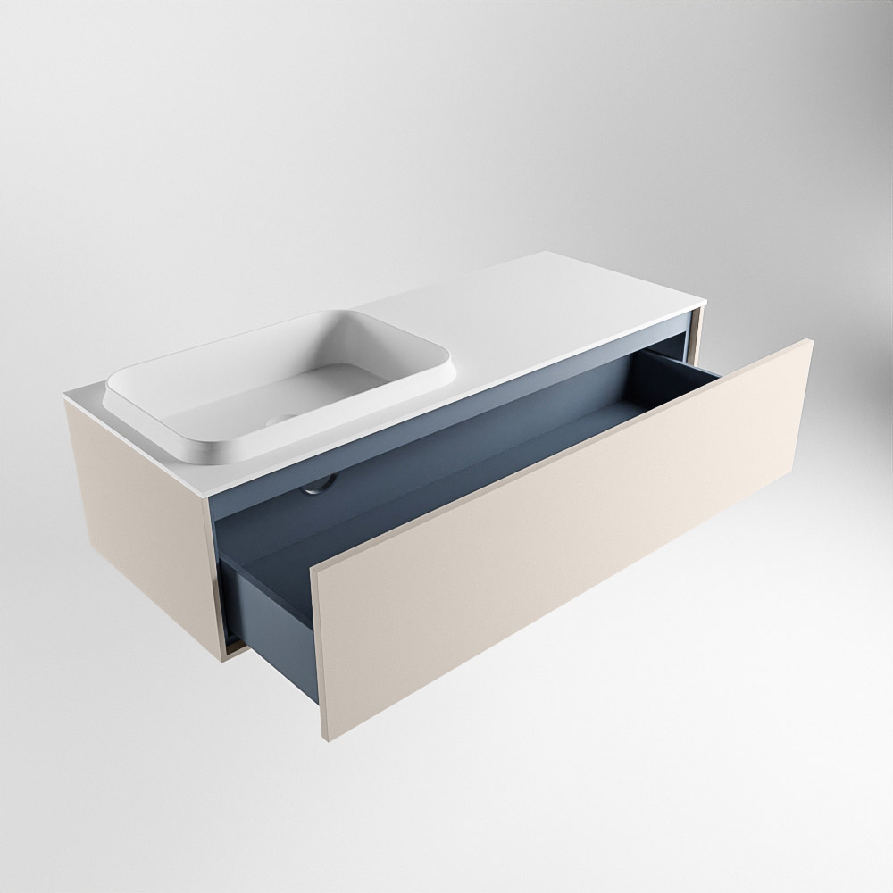 El lavabo de inserción tiene un borde elevado con un lavamanos extra grande y profundo. Las formas redondas del lavamanos emanan una suavidad lujosa. La ubicación del grifo del lavabo en la esquina del lavamanos añade un efecto juguetón adicional. El mueble de baño del conjunto ERIN cuenta con un cajón “push to open”. Esto le proporciona al mueble de baño una apariencia hermosa y aerodinámica que se adapta a cualquier estilo de baño.