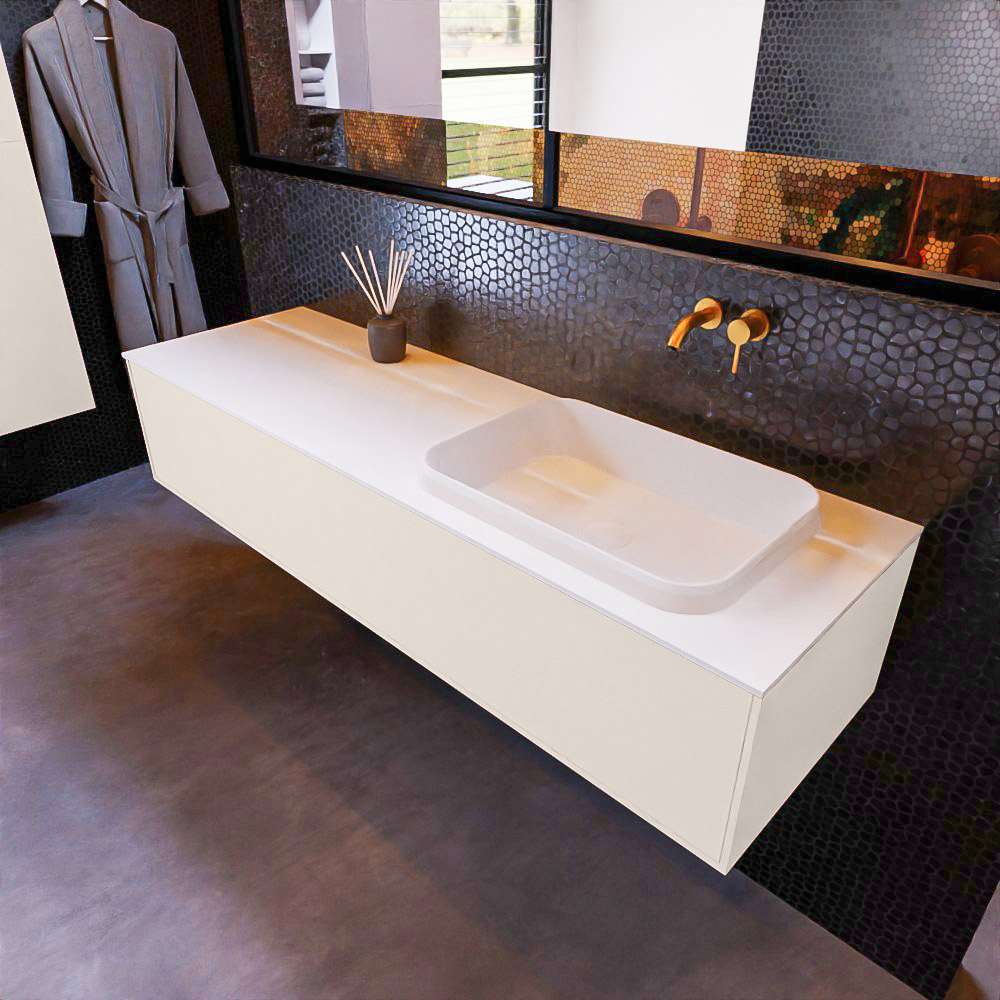 MONDIAZ ERIN 150cm mueble de baño color Linen 1 cajón. Lavabo RIDGE Derecho sin orificio color Talc.