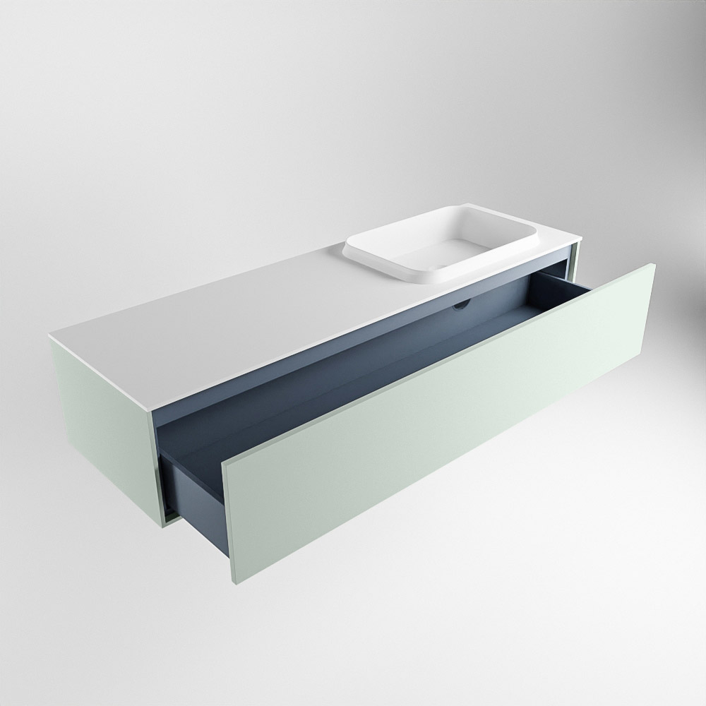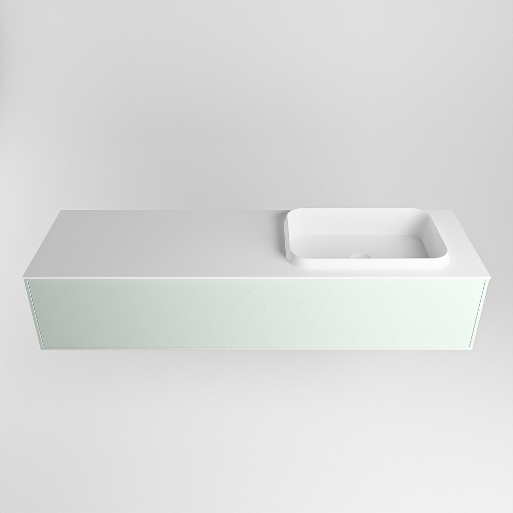 El lavabo de inserción tiene un borde elevado con un lavamanos extra grande y profundo. Las formas redondas del lavamanos emanan una suavidad lujosa. La ubicación del grifo del lavabo en la esquina del lavamanos añade un efecto juguetón adicional. El mueble de baño del conjunto ERIN cuenta con un cajón “push to open”. Esto le proporciona al mueble de baño una apariencia hermosa y aerodinámica que se adapta a cualquier estilo de baño.