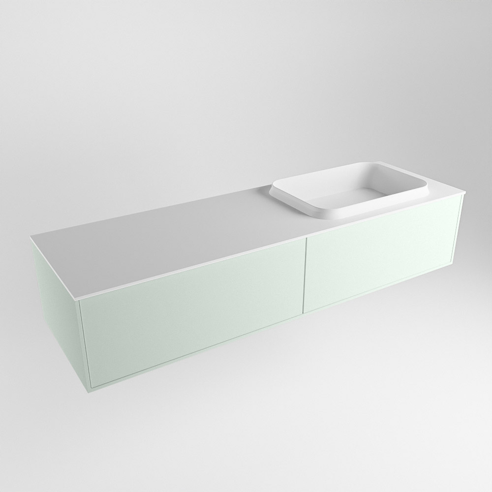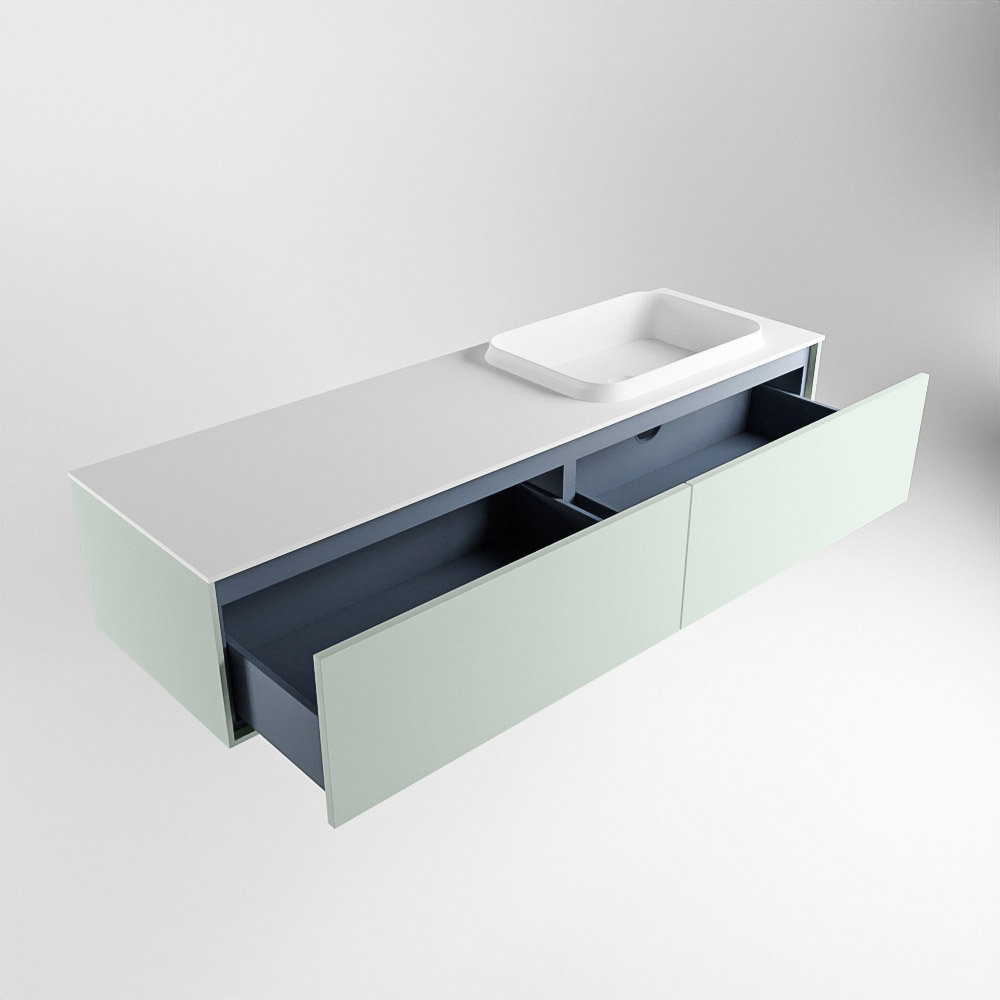 MONDIAZ ERIN 150cm mueble de baño color Greey 2 cajones. Lavabo RIDGE Derecho sin orificio color Talc.