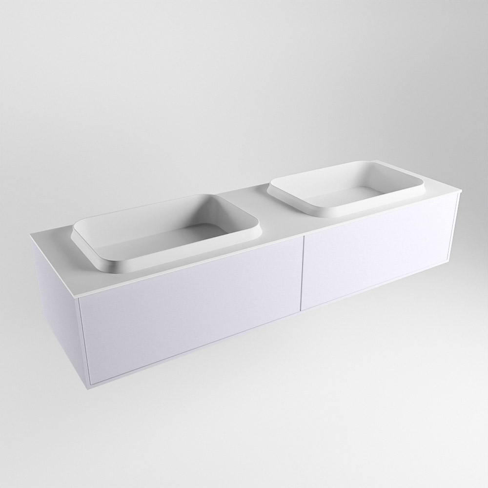 El lavabo de inserción tiene un borde elevado con un lavamanos extra grande y profundo. Las formas redondas del lavamanos emanan una suavidad lujosa. La ubicación del grifo del lavabo en la esquina del lavamanos añade un efecto juguetón adicional. El mueble de baño del conjunto ERIN cuenta con un cajón “push to open”. Esto le proporciona al mueble de baño una apariencia hermosa y aerodinámica que se adapta a cualquier estilo de baño.