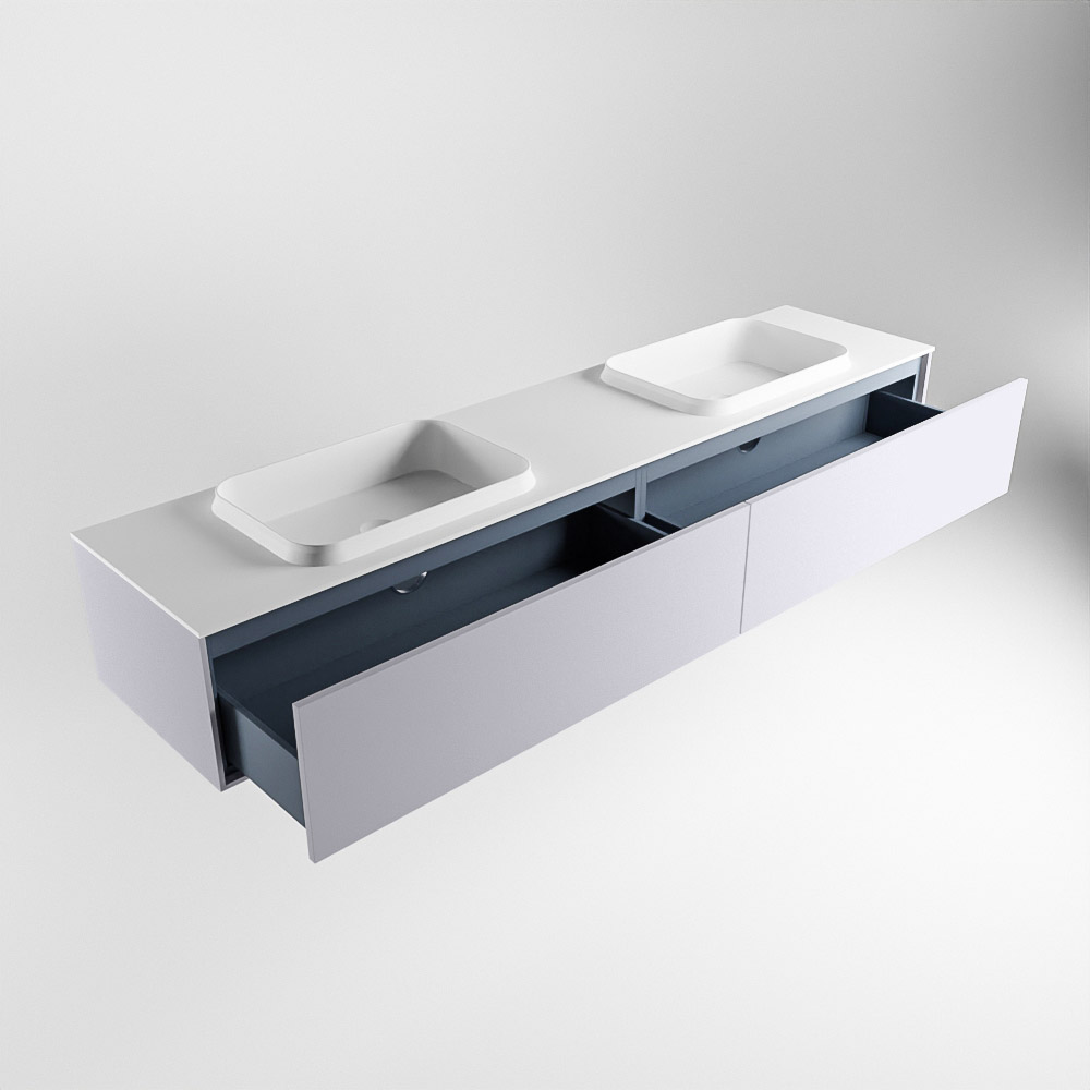 El lavabo de inserción tiene un borde elevado con un lavamanos extra grande y profundo. Las formas redondas del lavamanos emanan una suavidad lujosa. La ubicación del grifo del lavabo en la esquina del lavamanos añade un efecto juguetón adicional. El mueble de baño del conjunto ERIN cuenta con un cajón “push to open”. Esto le proporciona al mueble de baño una apariencia hermosa y aerodinámica que se adapta a cualquier estilo de baño.