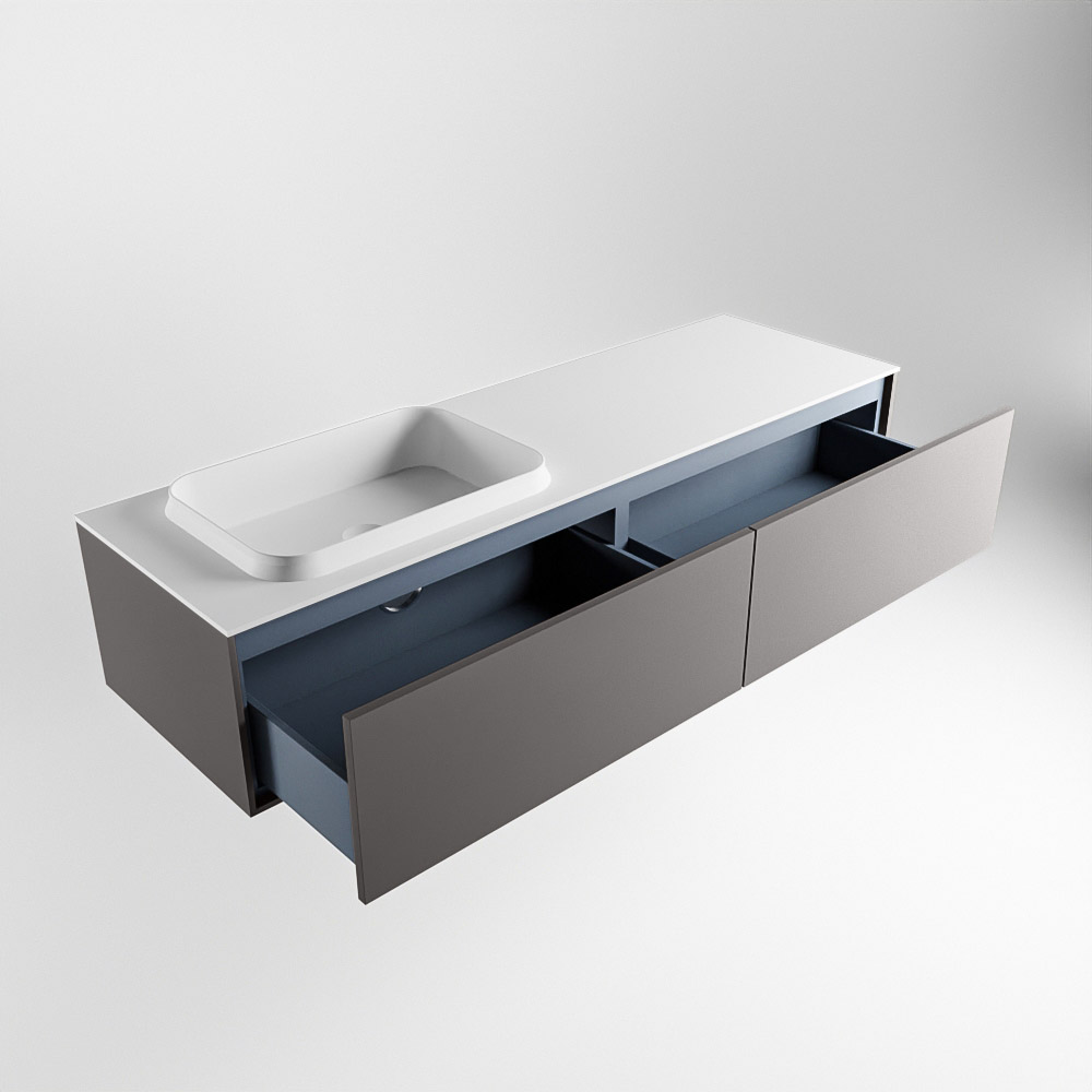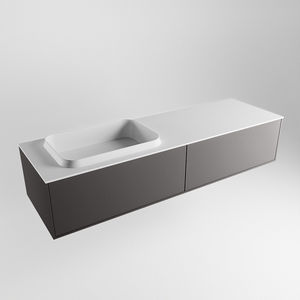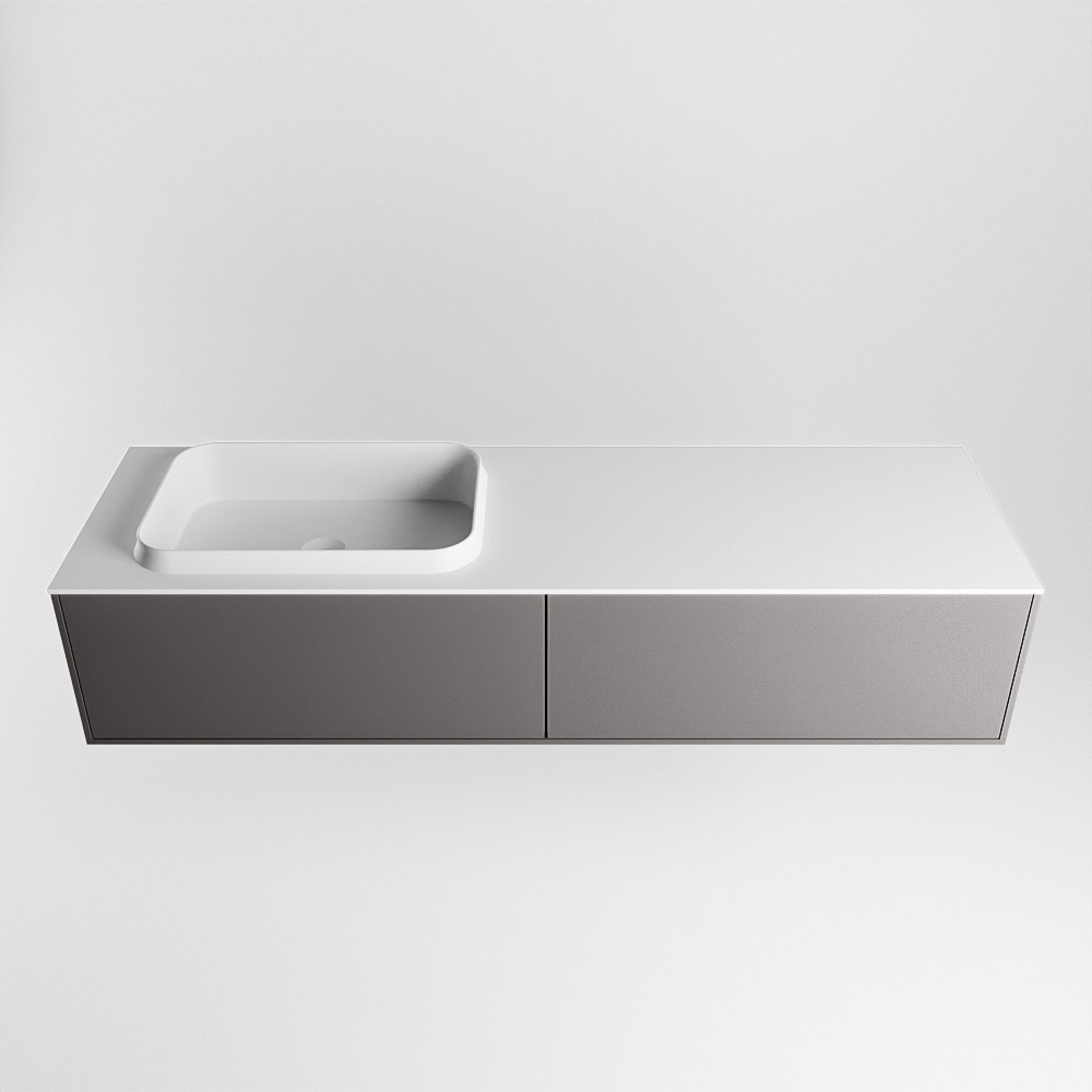 MONDIAZ ERIN 150cm mueble de baño color Dark Grey 2 cajones. Lavabo RIDGE Izquierda sin orificio color Talc.