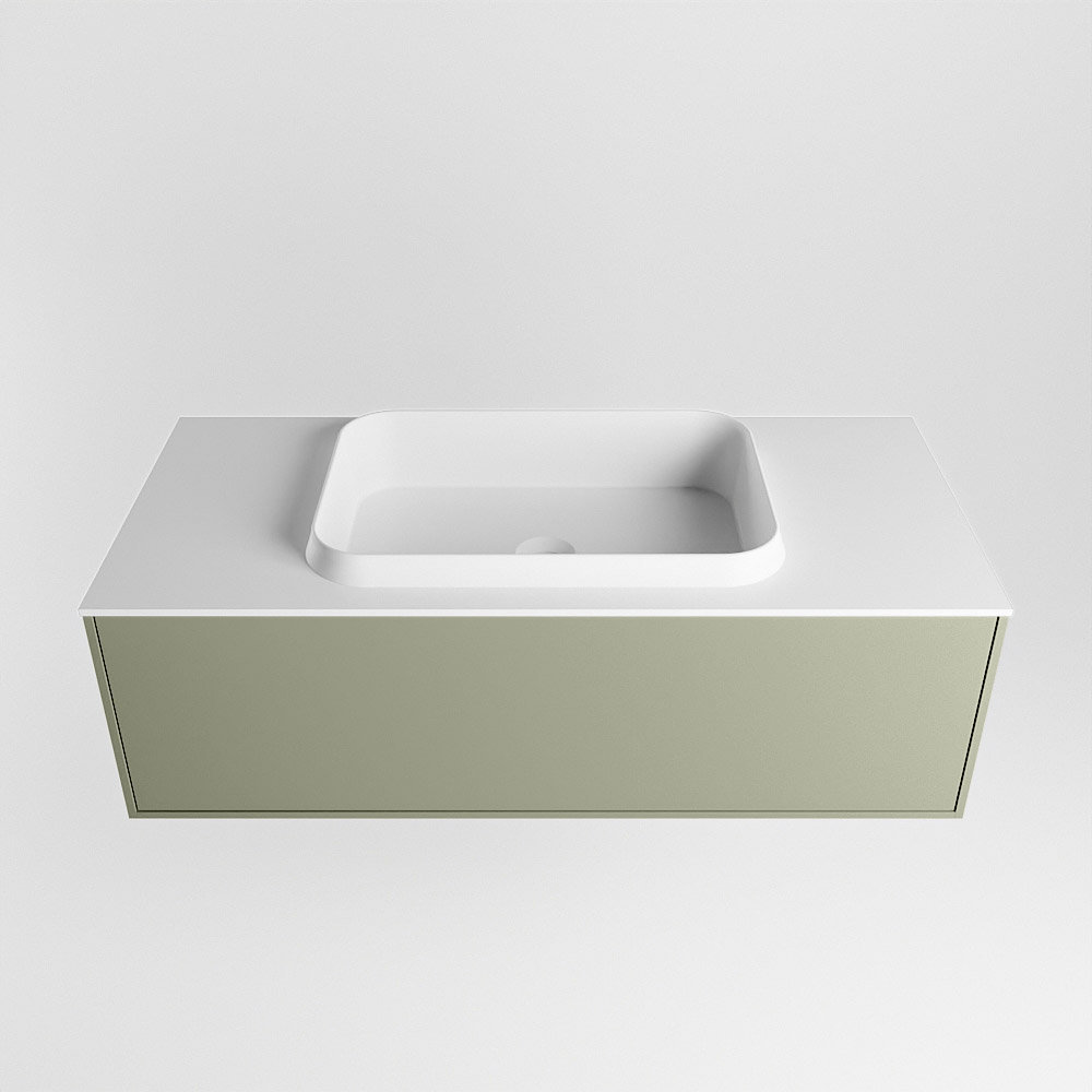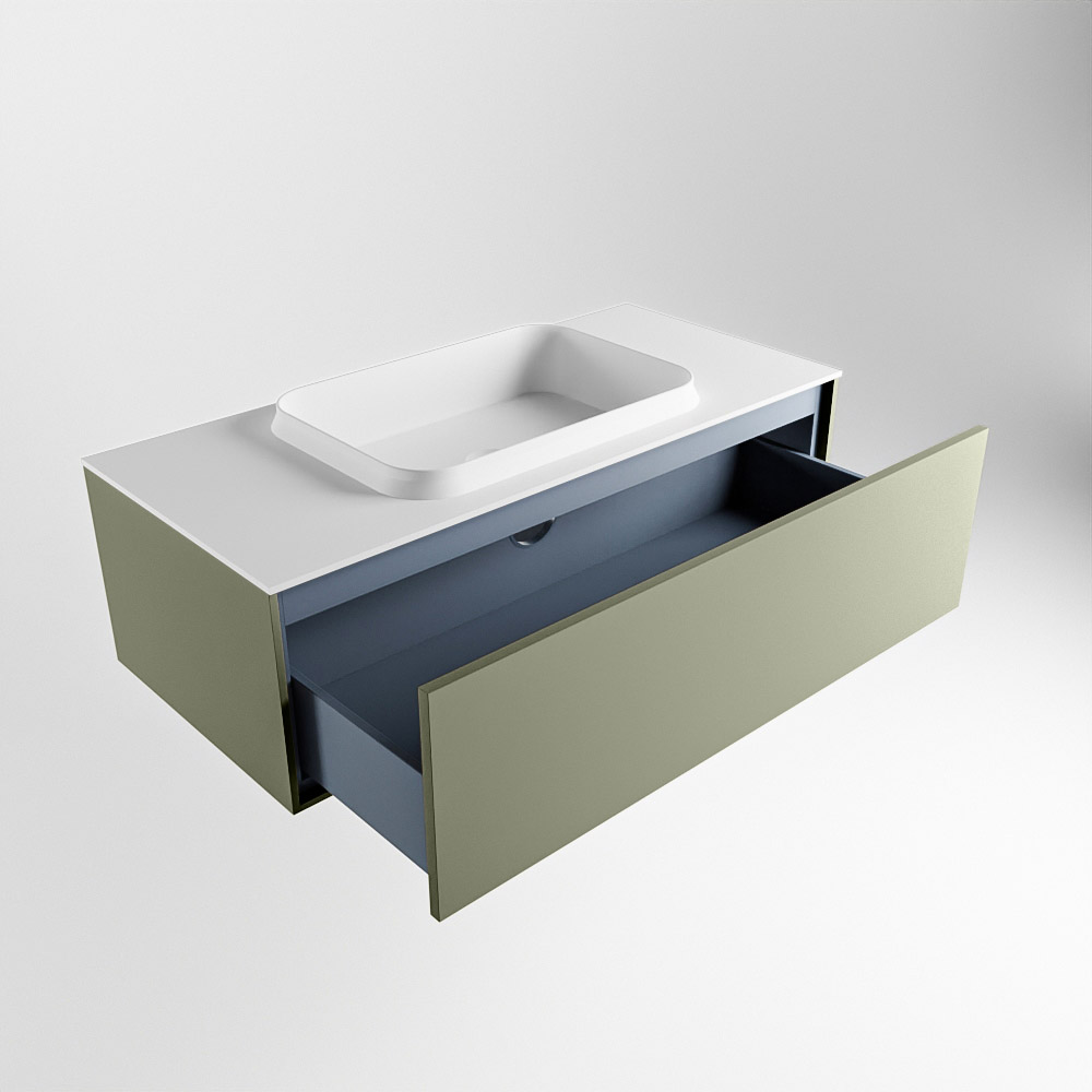 El lavabo de inserción tiene un borde elevado con un lavamanos extra grande y profundo. Las formas redondas del lavamanos emanan una suavidad lujosa. La ubicación del grifo del lavabo en la esquina del lavamanos añade un efecto juguetón adicional. El mueble de baño del conjunto ERIN cuenta con un cajón “push to open”. Esto le proporciona al mueble de baño una apariencia hermosa y aerodinámica que se adapta a cualquier estilo de baño.